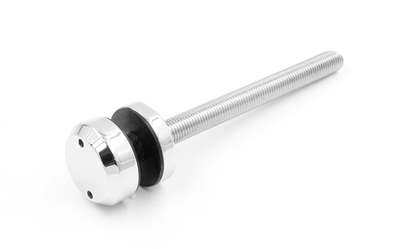Точечный стеклодердатель для торцевого крепления несущего стекла в широчайшем диапазоне от 8 (4+4) мм до 40 (20+20) мм. Шпилька диаметром 16 мм и длиной 200 мм тестировалась на срез под нагрузку 2 тонны. Диаметр наружной (18 мм, хрюшка) и внутренней (10 мм) шайб по 50 мм.
