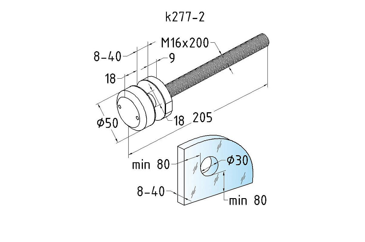 Комплект торцевого крепления несущего стекла, шпилька AISI316, гайка-шайба Ø50х10х18 мм с внутренней резьбой М16, полированный k277-2