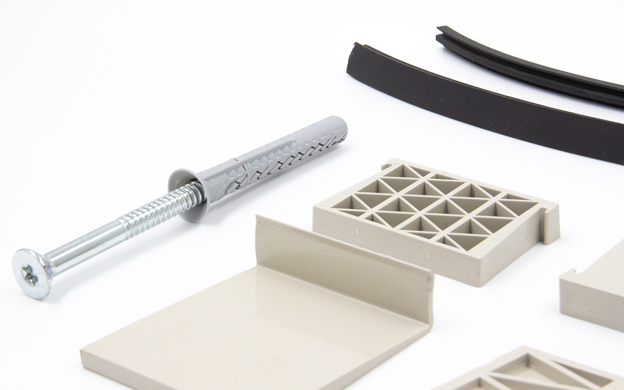 Профиль поставляется готовым к монтажу, все крепежные элементы включены в комплект, и даже отверстия уже просверлены - просто бери и крепи к горизонтальной поверхности. Это удобно. Смотрится эстетично, с годами не теряет привлекательности, устойчив к внешним воздействиям.