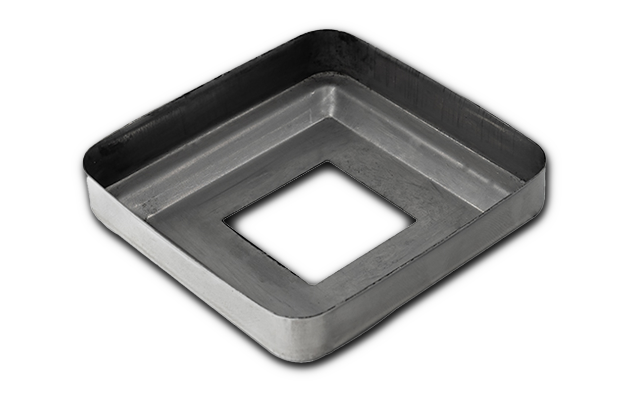 Низ стойки фигурный под трубу 50х50 мм, 83х83х0.5 мм, высота 17 мм, полированный (AISI 304) k375