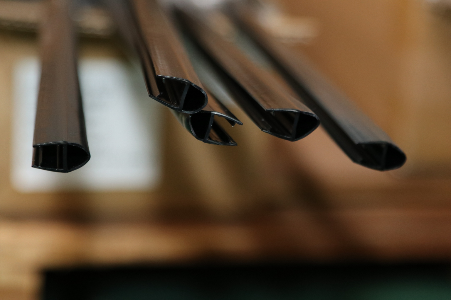 Уплотнитель имеет исполнение полупрозрачной черной поверхности, выполнен из материала ПВХ. Имеет A-образный профиль. Толщина одного типоразмера составляет 1,5 мм, длина – 2200 мм. За счет своих свойств (стойкость к щелочам, минеральным маслам и многим кислотам) прекрасно подходит для крепления стеклянного листа по всему периметру. Позволяет герметично соединять стеклянные панели с дверью, что гарантируют отсутствие течи в вертикальной части конструкции.