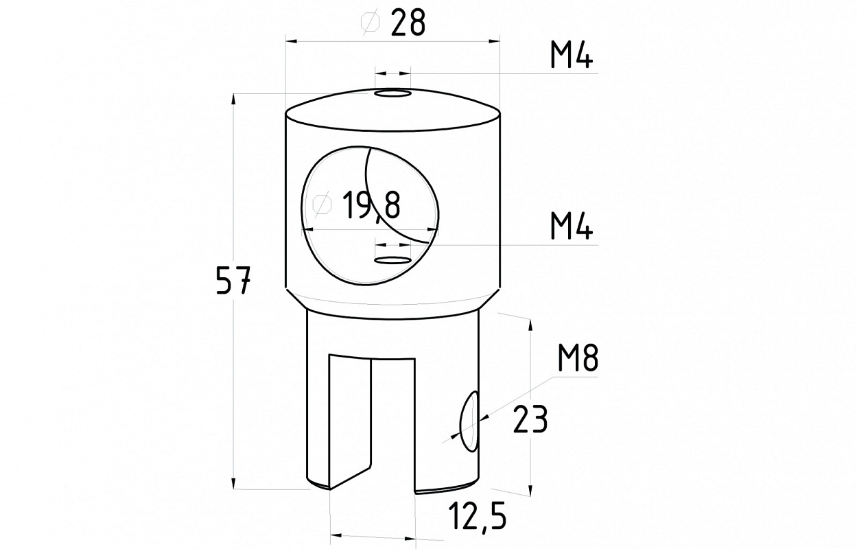 Держатель стекла сквозной на трубу диаметром 19 мм, материал - цинк, цвет - черный