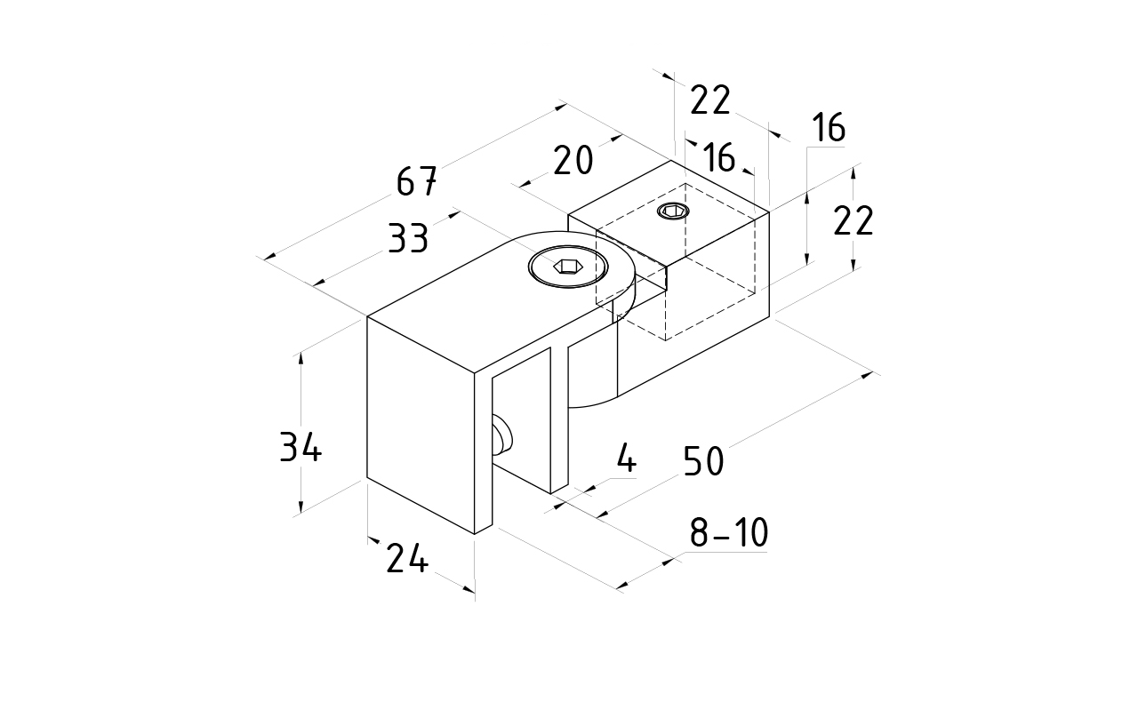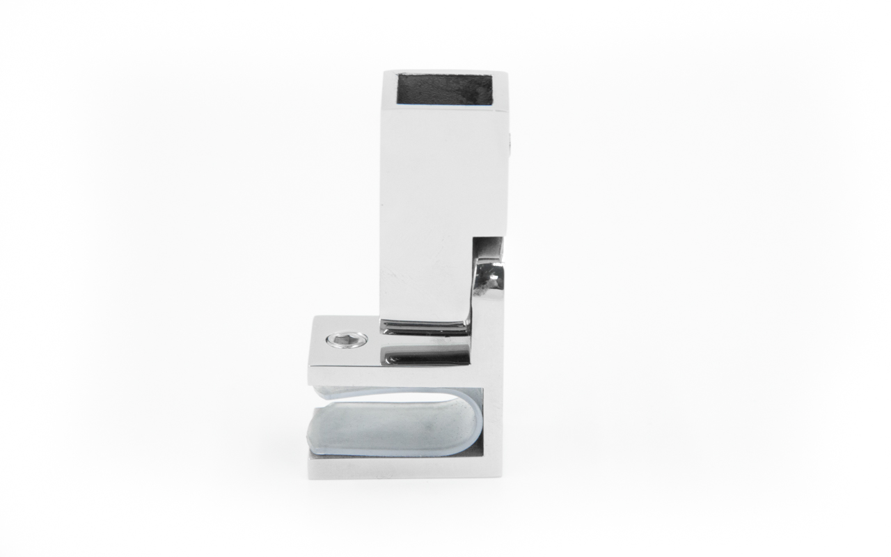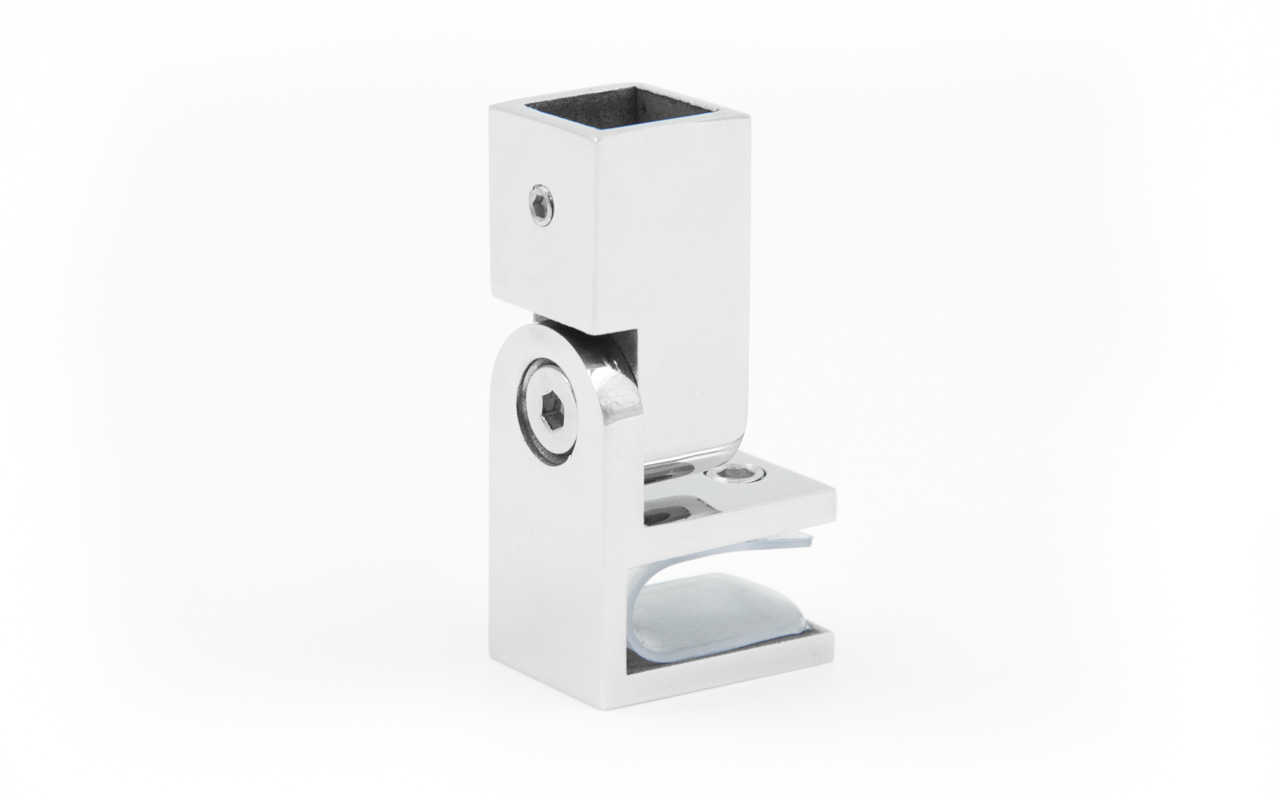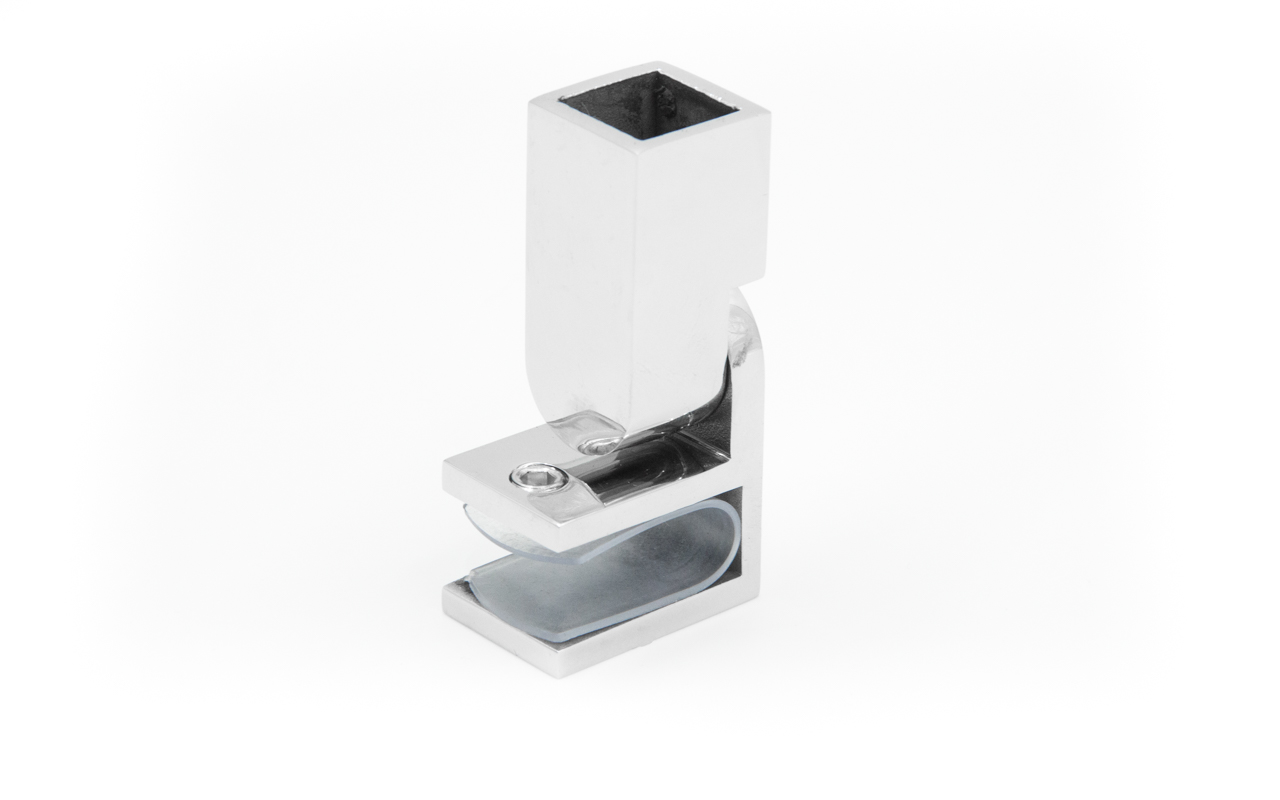 Коннектор предназначен для крепления трубы 15х15 мм  к стеклу под произвольным углом при монтаже штанг верхней обвязки душевых кабин.