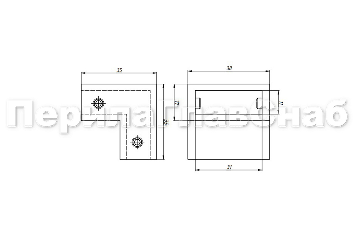 Соединитель труба-труба 90°предназначен для трека 30х10 мм, 90°. Деталь шлифованная, марка стали - AISI 304
