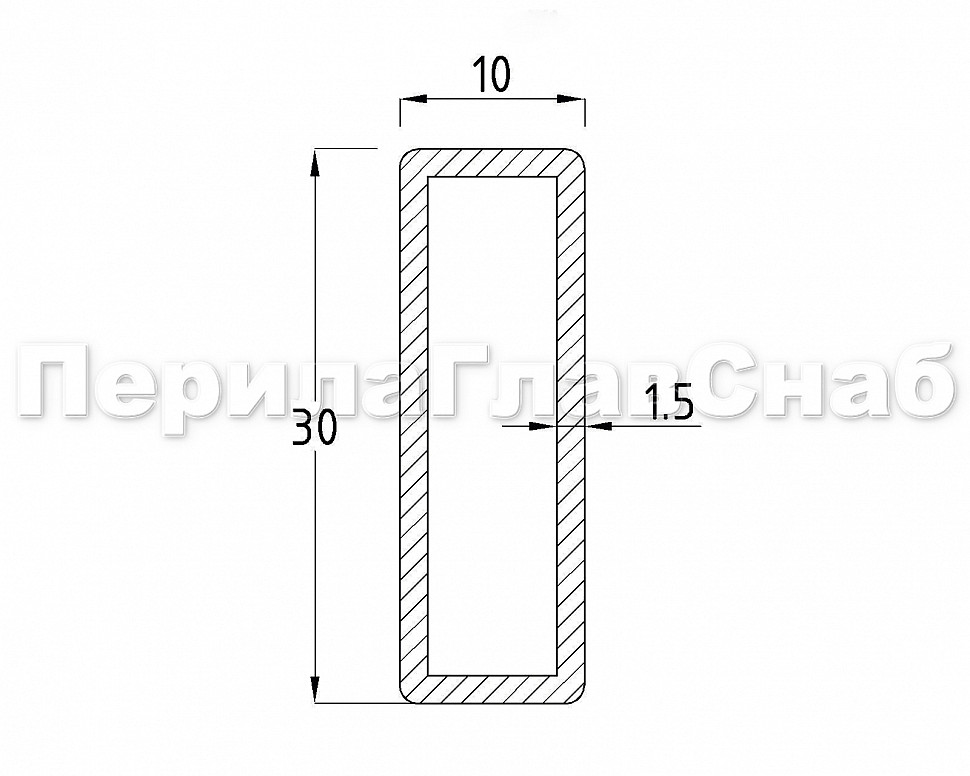 Трек прямоугольный 30х10х1,5мм, длина 3000мм, шлифованный. Марка стали - AISI 304