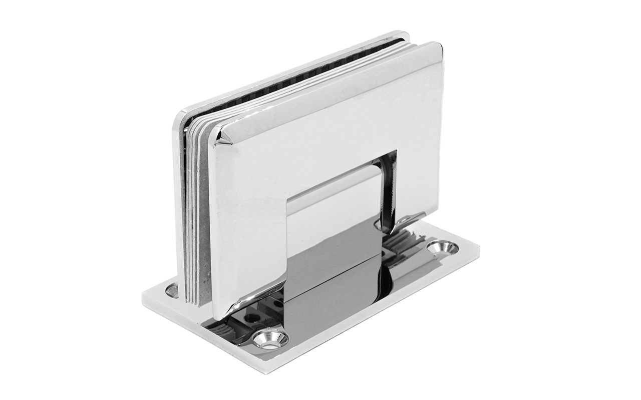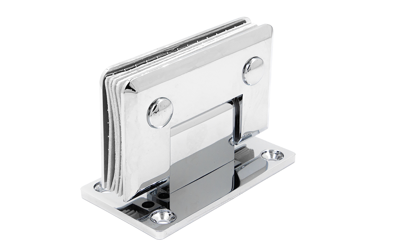 Петля из нержавеющей стали с полированной поверхностью из нержавеющей стали предназначена для стыковки между собой конструкционных элементов из стекла, толщина которых находится в диапазоне от 8 до 10 мм. Максимальный вес двери на 2 петли составляет 45 кг. В конструкции заложена система скрытого крепежа. Имеет функцию доводчика до закрытия от 25°. Максимальный угол разведения стыковочных элементов в плане составляет 90°. Крепление предусмотрено с двух сторон на 4 винта со шляпками заподлицо (по 2 винта на каждую сторону). Размер одной стороны петли составляет 90х55 мм.