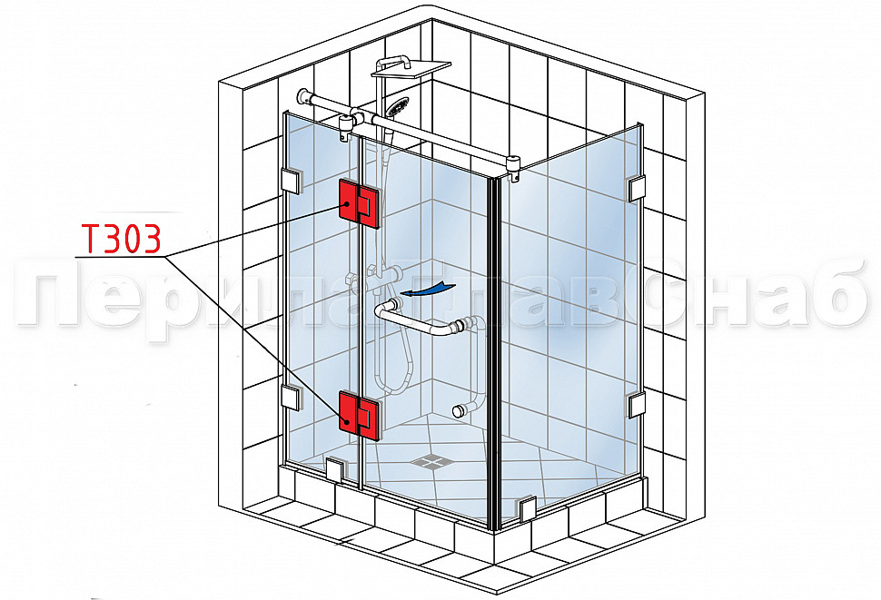 Комплект раздвижной системы для стеклянной душевой, нержавеющая сталь AISI 304, полированная t401 PSS купить в Омске