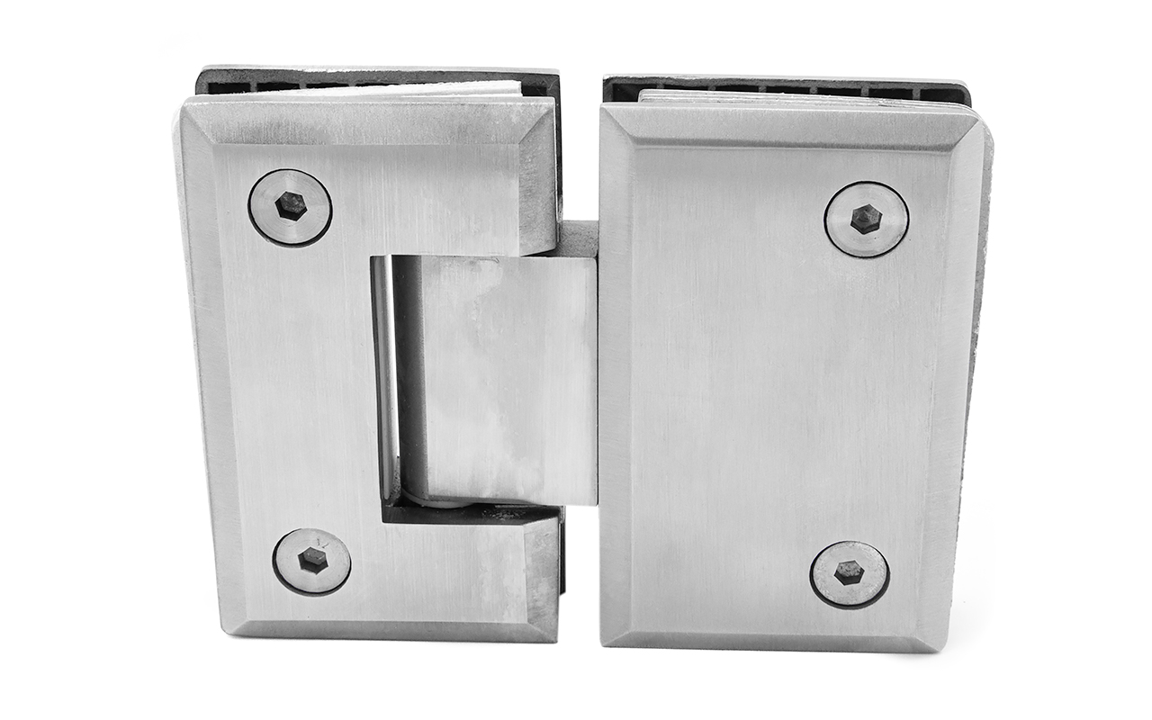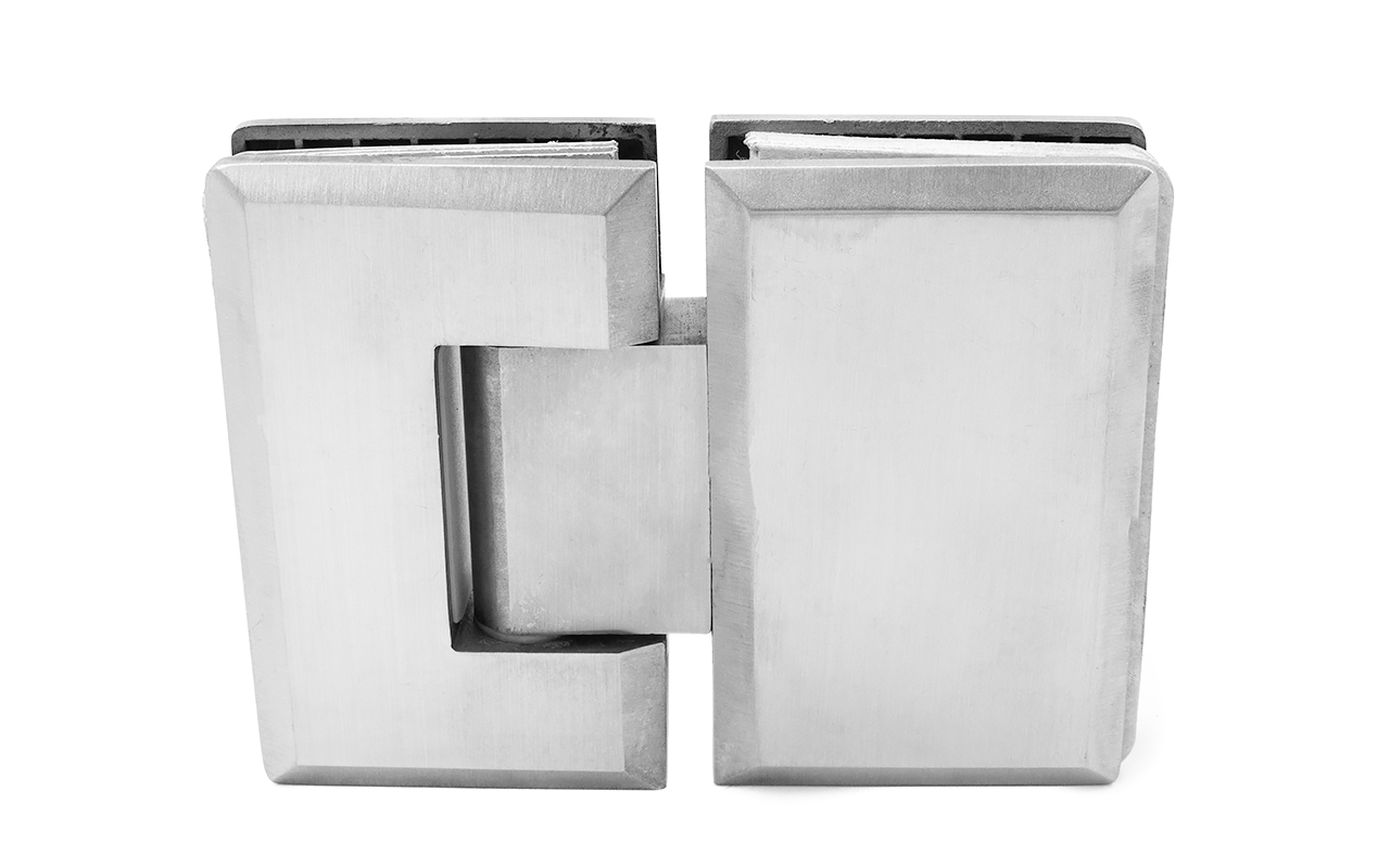 Петля из нержавеющей стали со шлифованной поверхностью из нержавеющей стали предназначена для стыковки между собой конструкционных элементов из стекла, толщина которых находится в диапазоне от 8 до 10 мм. Максимальный вес двери на 2 петли составляет 45 кг. В конструкции заложена система скрытого крепежа. Имеет функцию доводчика до закрытия от 25°. Максимальный угол разведения стыковочных элементов в плане составляет 180°