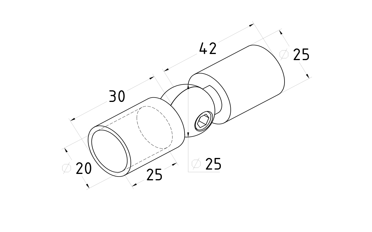 Соединитель трубы 19 мм, шарнирный, нержавеющая сталь AISI 304, полированная t915 PSS
