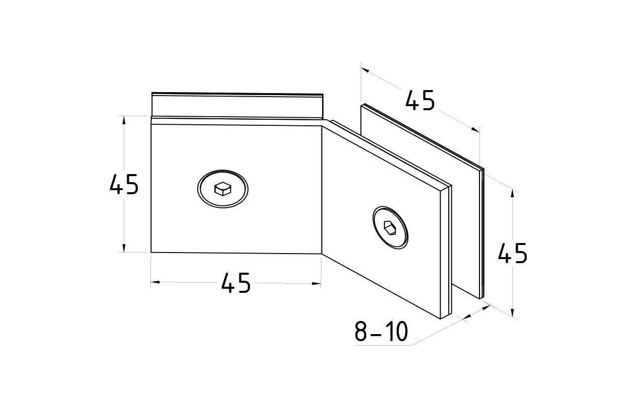 Коннектор для душевой кабины стекло-стекло 90°, 45х45, черный, t735 BZn