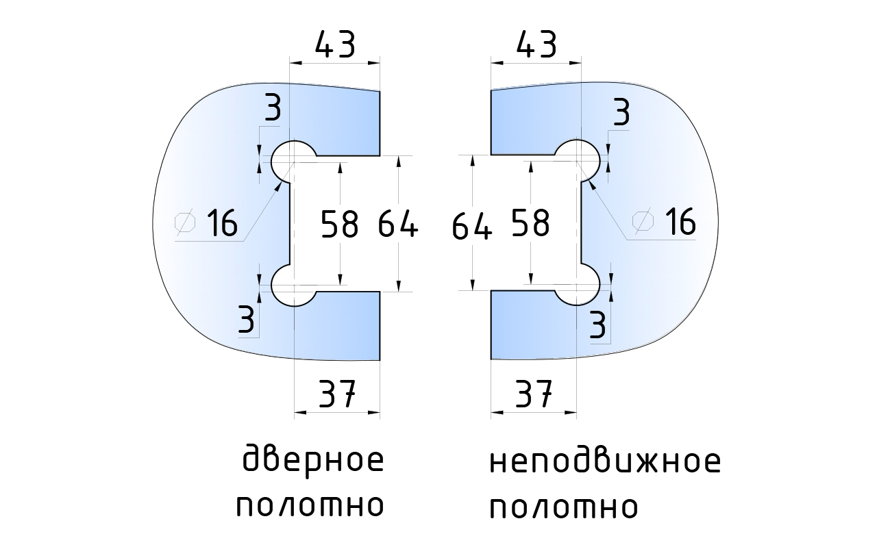 Крепление предусмотрено с двух сторон на 4 винта со шляпками заподлицо (по 2 винта на каждую сторону). Размер одной стороны петли составляет 90х55 мм.