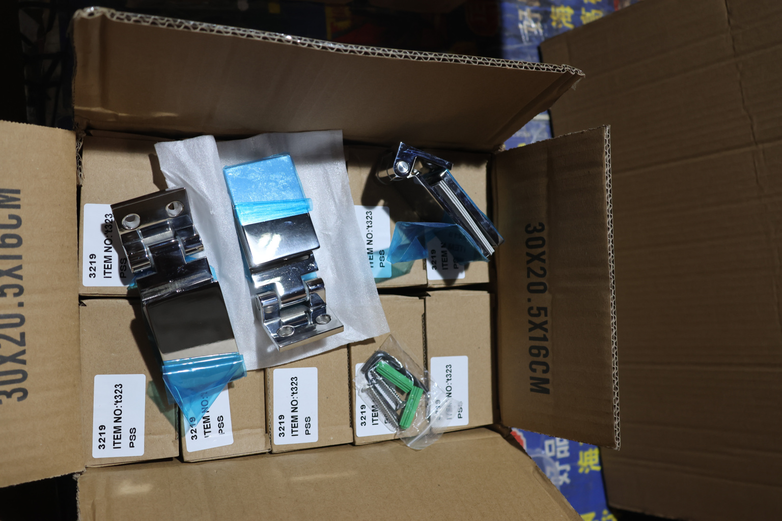 t301 SSS - петля для душевой кабины стена-стекло 90° 90х55 мм AISI 304, шлифованная. Преимущество t323 PSS - можно использовать дверь по типу гармошки.