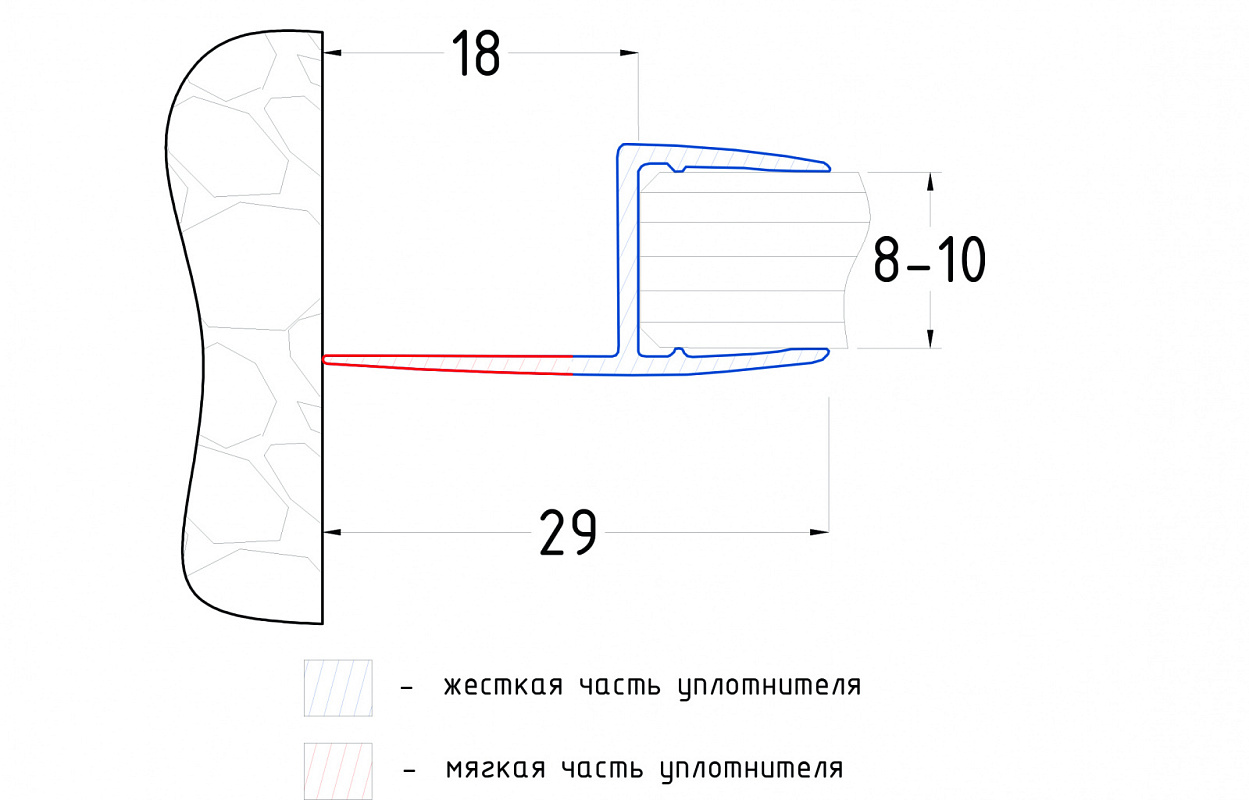 Уплотнитель для стекла 8мм, 90°, стекло-стекло 2,2 м.длина уса 25 мм t215y-8 купить в Омске
