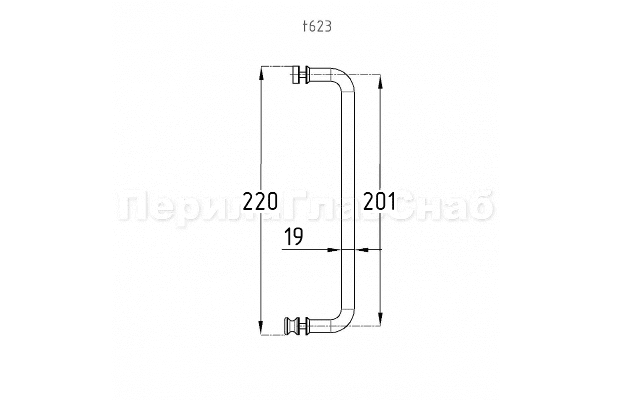 Дверная ручка с кнобом для стекла 8-10 мм, 19х201 мм, отверстие 12 мм, полированная t623-200 PSS