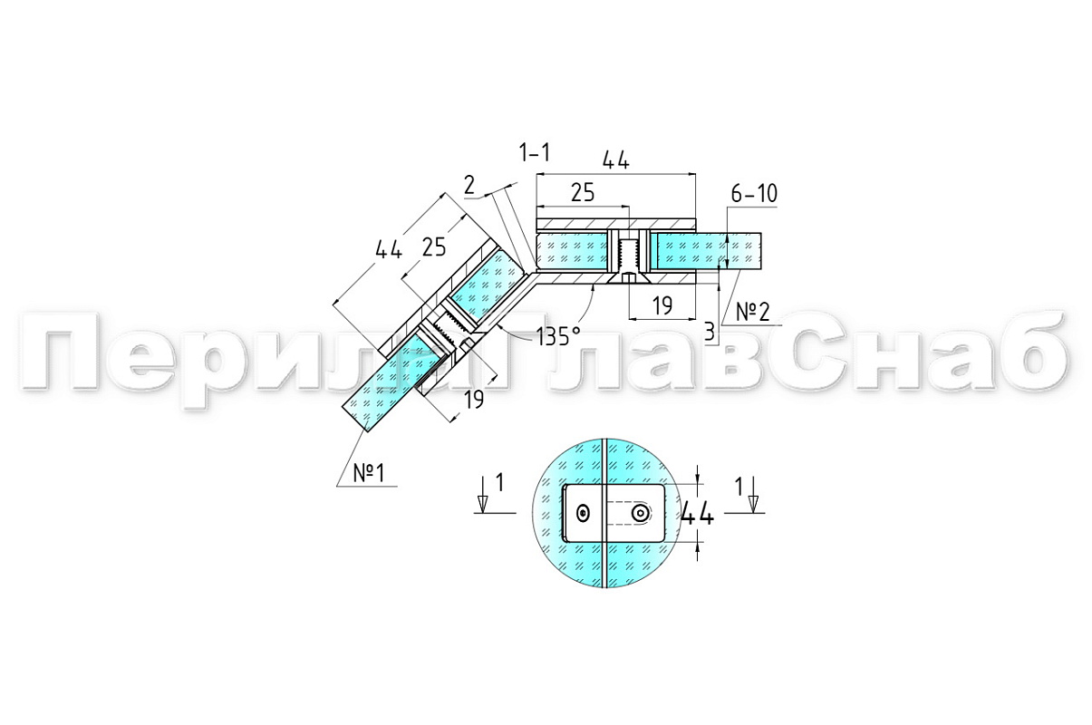 Коннектор для душевой кабины стекло-стекло 135°, 45х45, цинк , вырез 71 t736 PZn купить в Омске