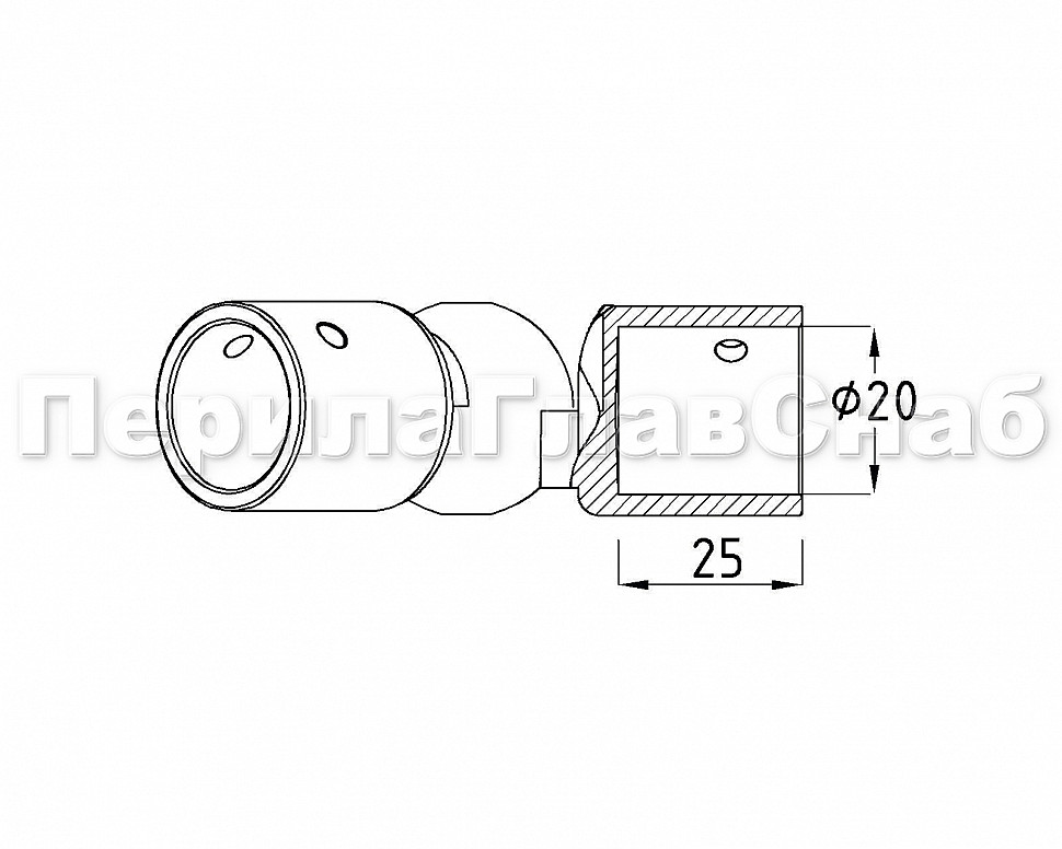 Соединитель трубы 19 мм, шарнирный, нержавеющая сталь AISI 304, полированная t915 PSS