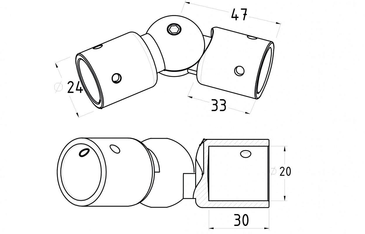 Соединитель шарнирный, регулируется под произвольным углом.