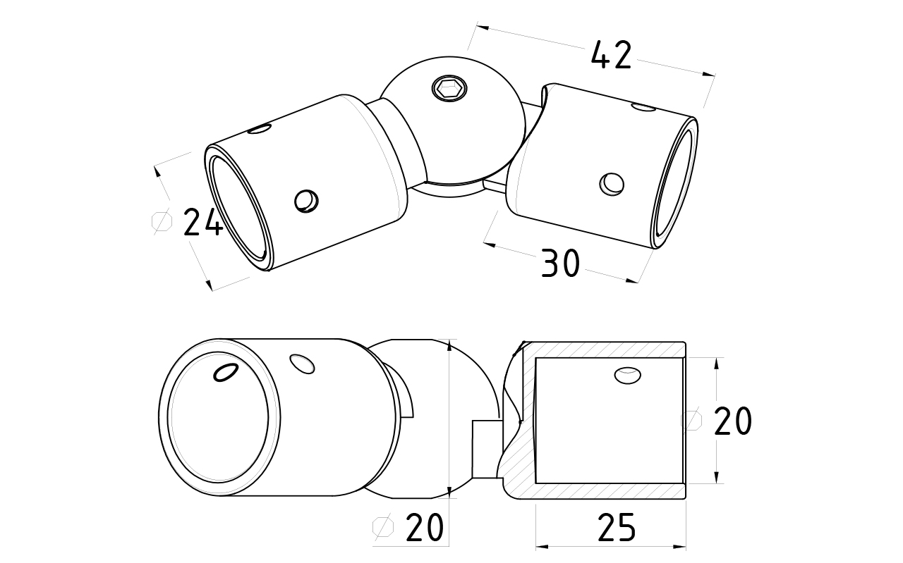 Соединитель регулируется под произвольным углом.