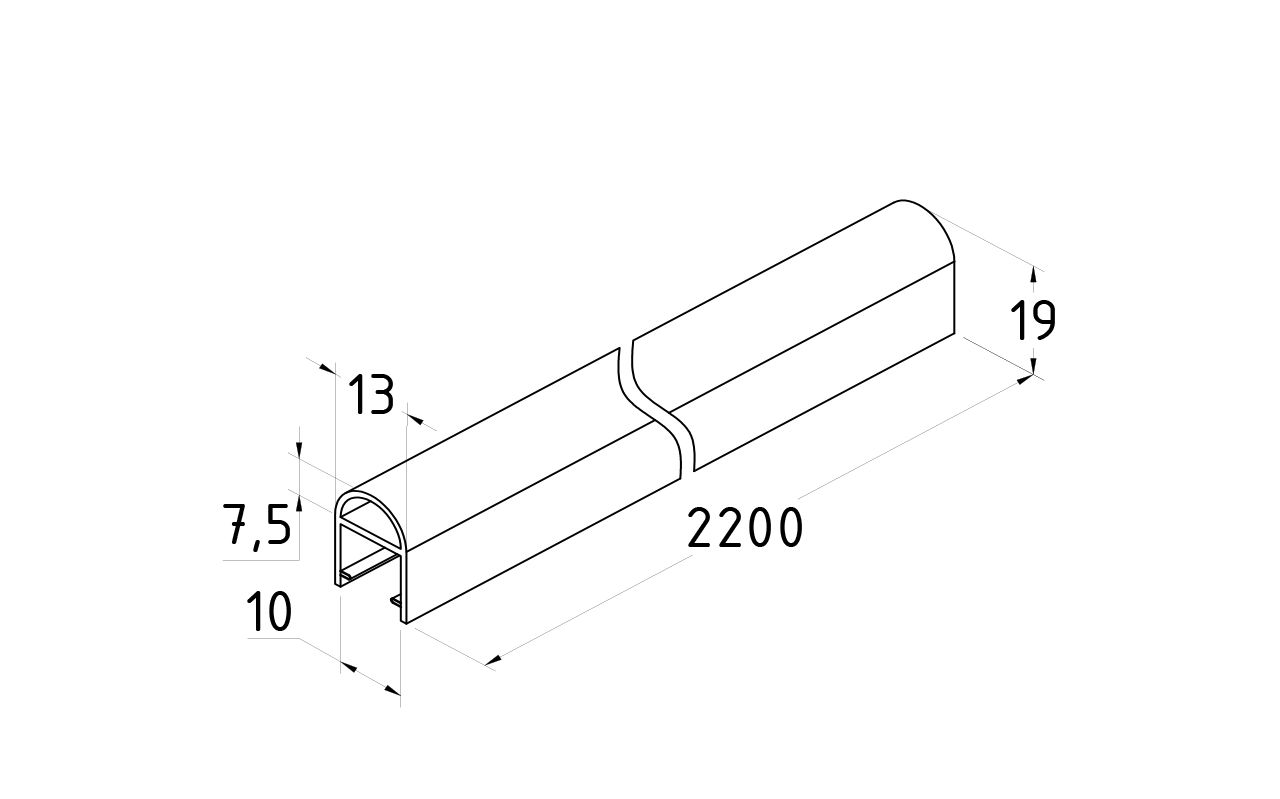 Уплотнитель для стекла 10 мм, дверь-стекло 2200 мм t216