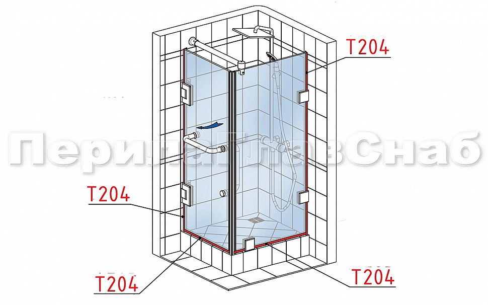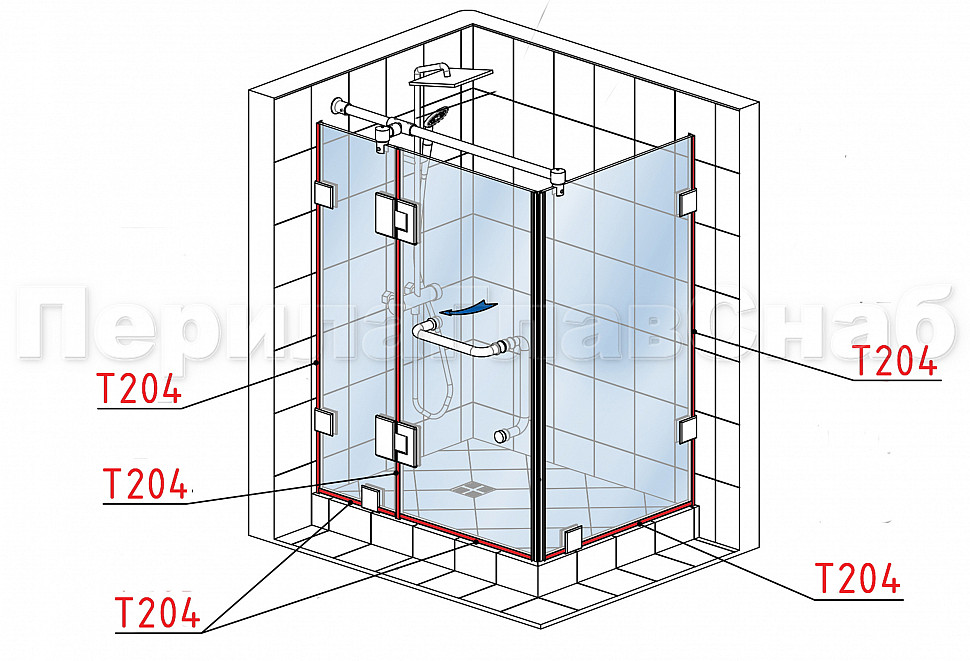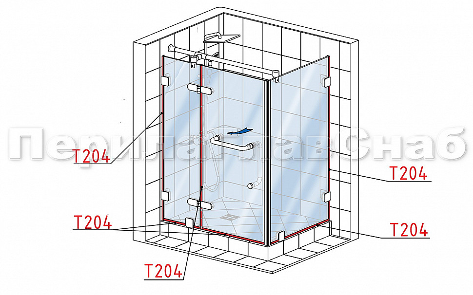 Комплект раздвижной системы для стеклянной душевой, нержавеющая сталь AISI 304, полированная t401 PSS купить в Омске