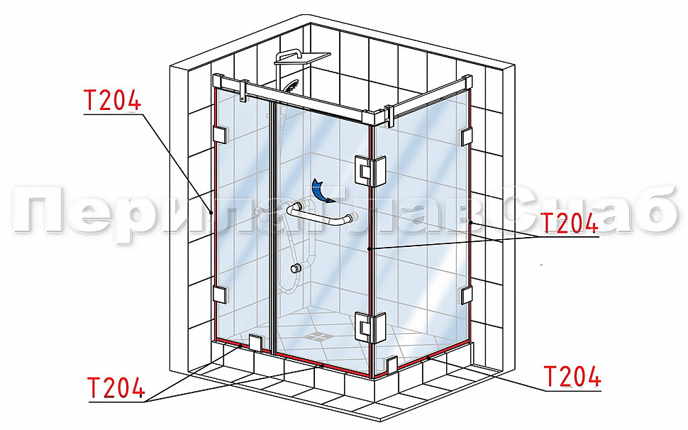Уплотнитель для стекла в душевую кабину 8 мм, дверь-стекло 2200 мм t212 купить в Омске