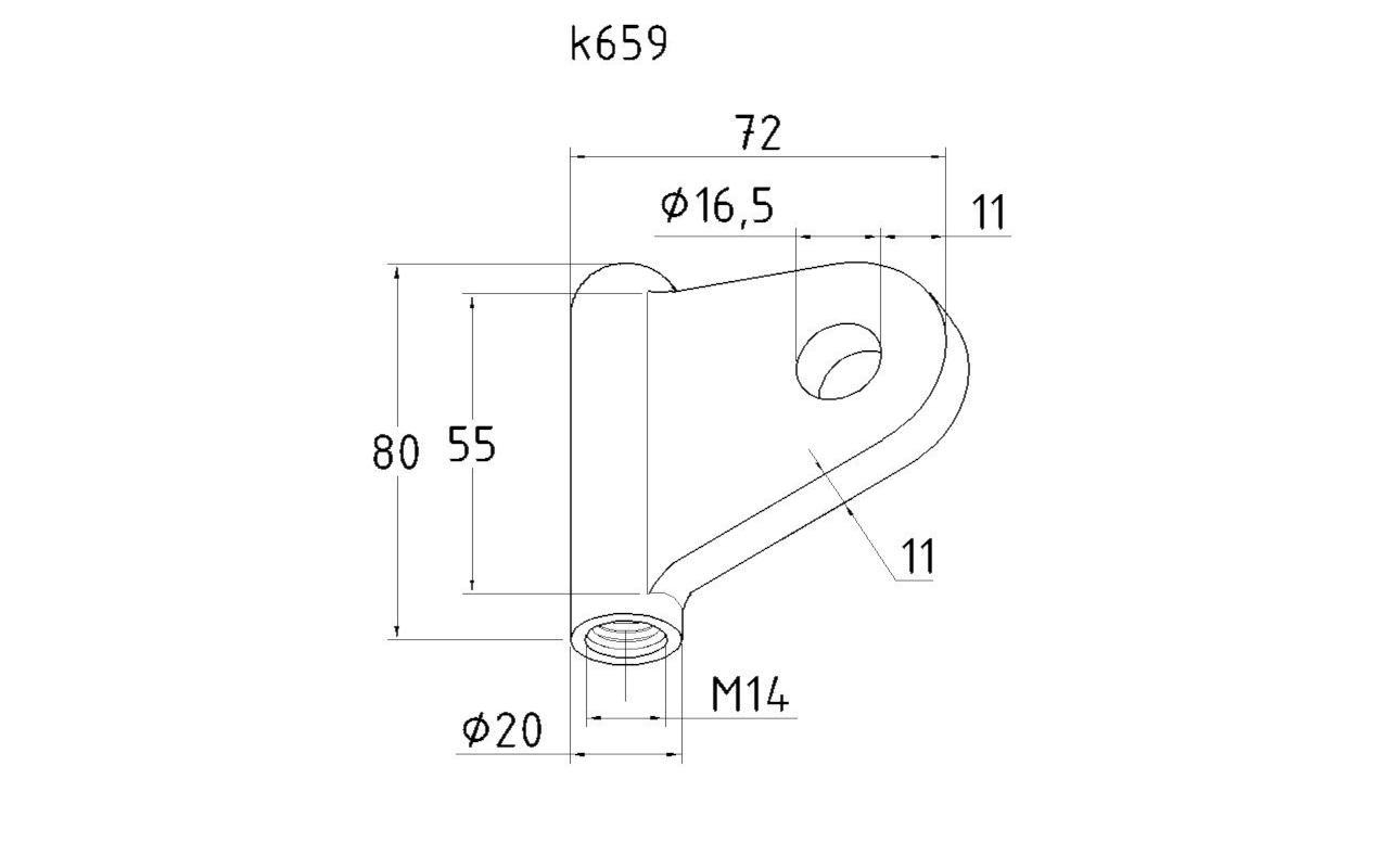 Крепление рутеля к тяге (серьга). Состоит из костяка с резьбой M14 и техническим отверстием 16,5 мм.