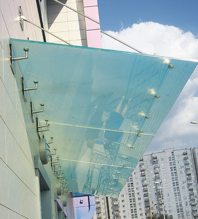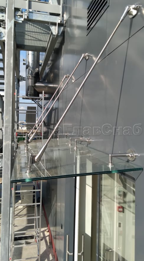 • Широкий спектр возможностей.  Серьга далеко не всегда используется с рутелем. В некоторых навесных системах она крепится напрямую к спайдеру.  Если на фасаде здания недостаточно места для крепления козырька, чаще всего это светопрозрачные фасады с аллюминевой конструкцией, серьга может выступать заменителем крепления тяги к стене.