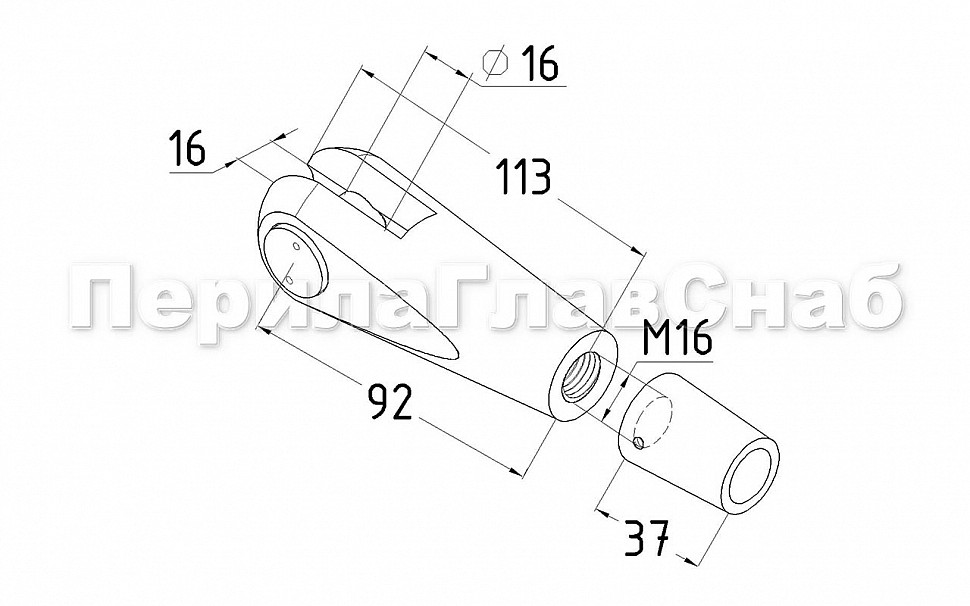 Наконечник ванты (тяги) под резьбу М16 левый (AISI304) k661-L