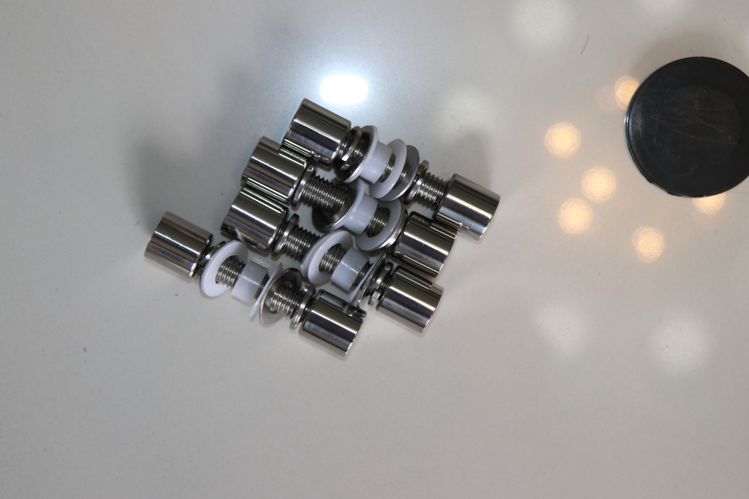 X-спайдер для установки на стеклянное ребро, марка стали- AISI 304. Минимальный размер составляет 14, а максимальный — 24. Однако, если убрать обычные гайки, то размер можно сделать больше.