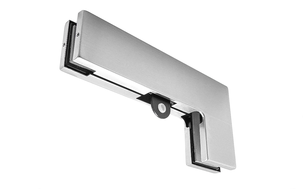 для соединения стационарной панели стеклянной перегородки с верхней фрамугой. Стопор ограничивает открывание двери в любую из сторон по выбору.