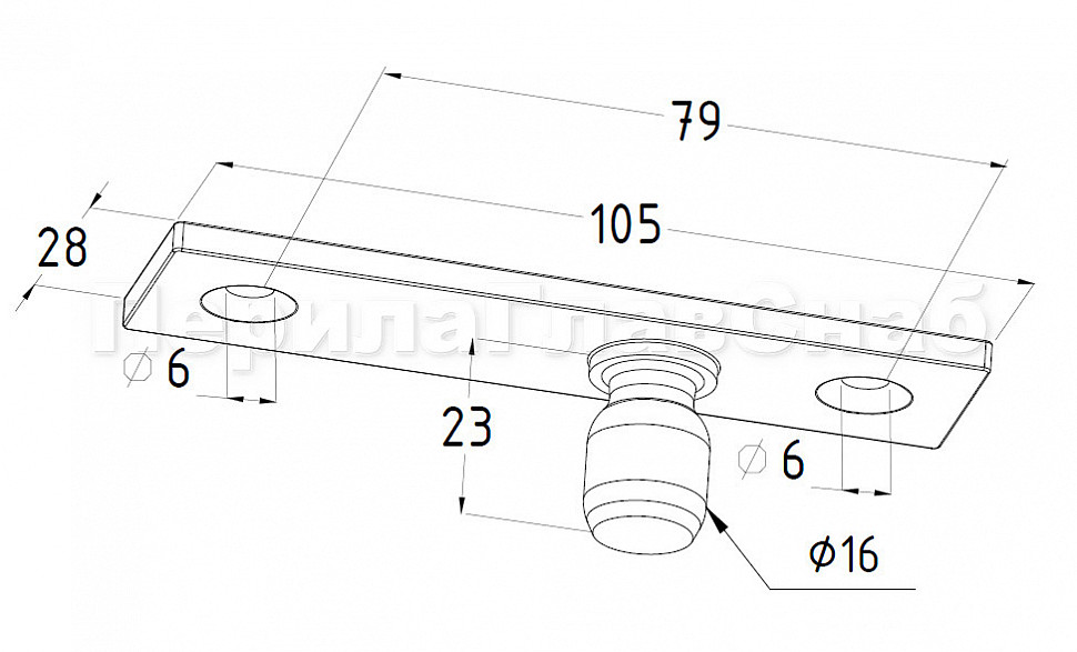 Ось верхняя, шлифованная, марка стали AISI 304. Представляет собой верхнюю ось для стеклянной маятниковой двери без фрамуги.