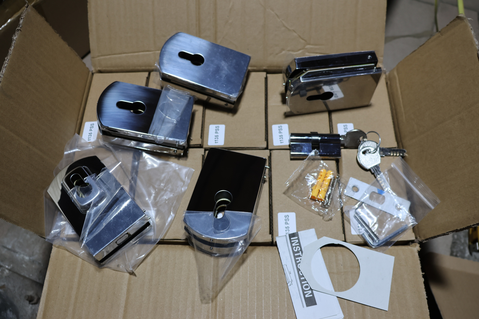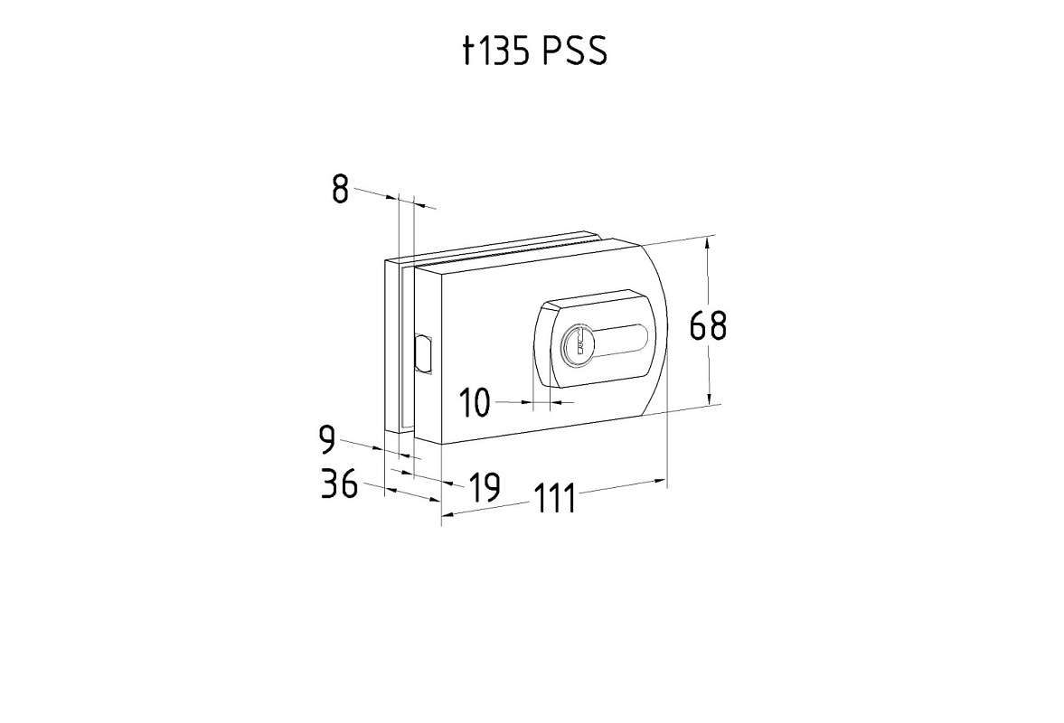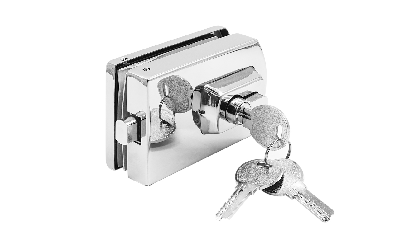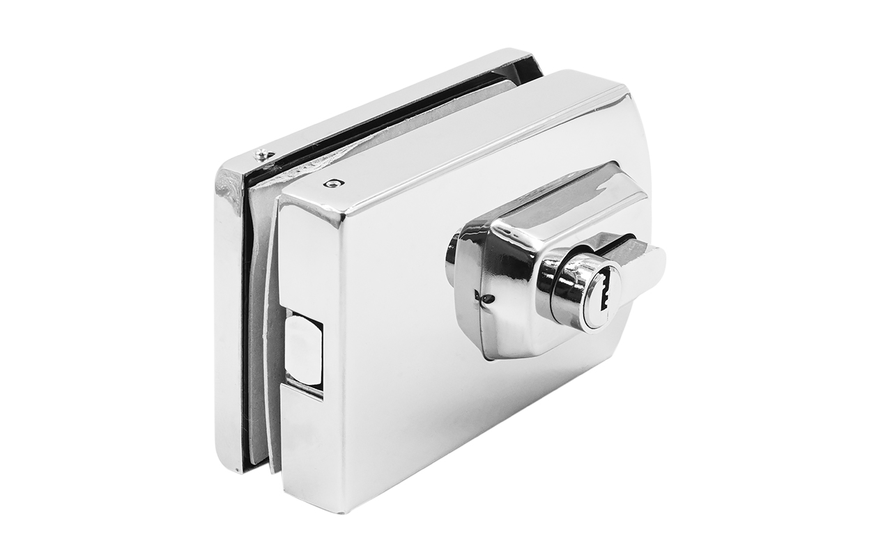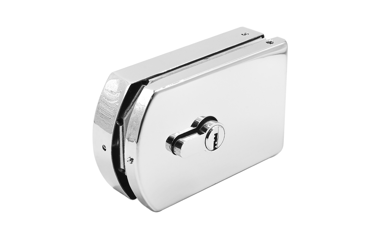 Замок для стеклянной двери вертикальный с ответной частью на стену и пол, полированный, вырез 15 t135 PSS