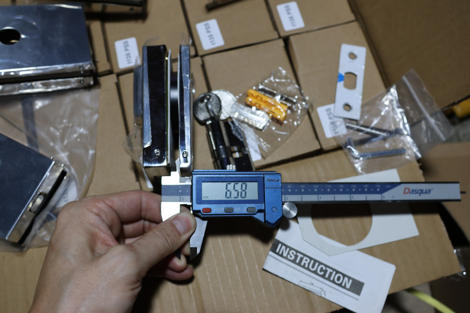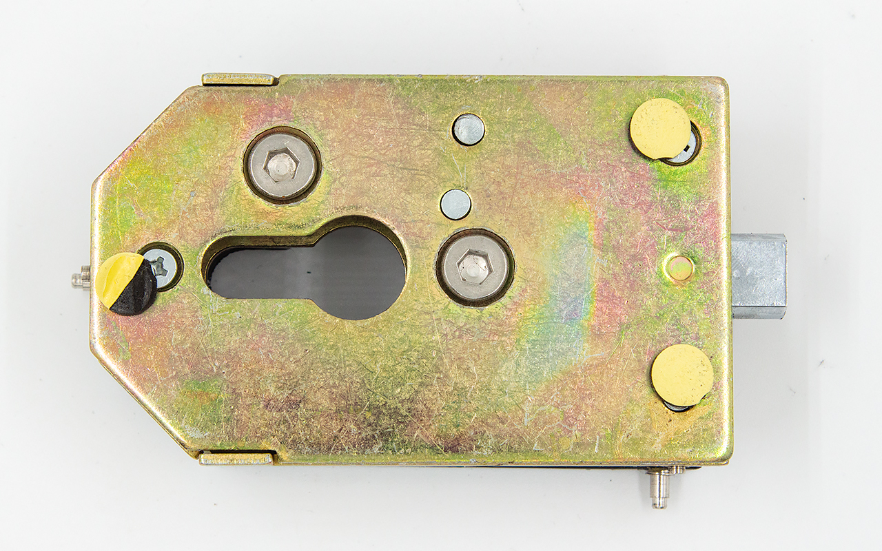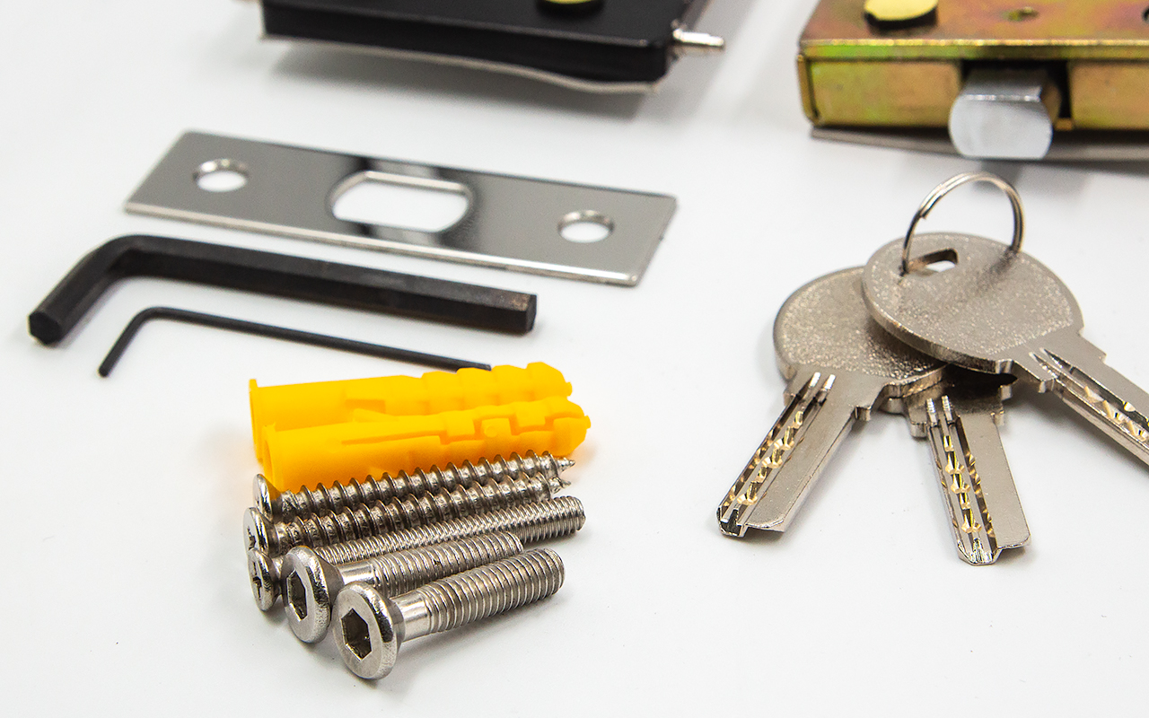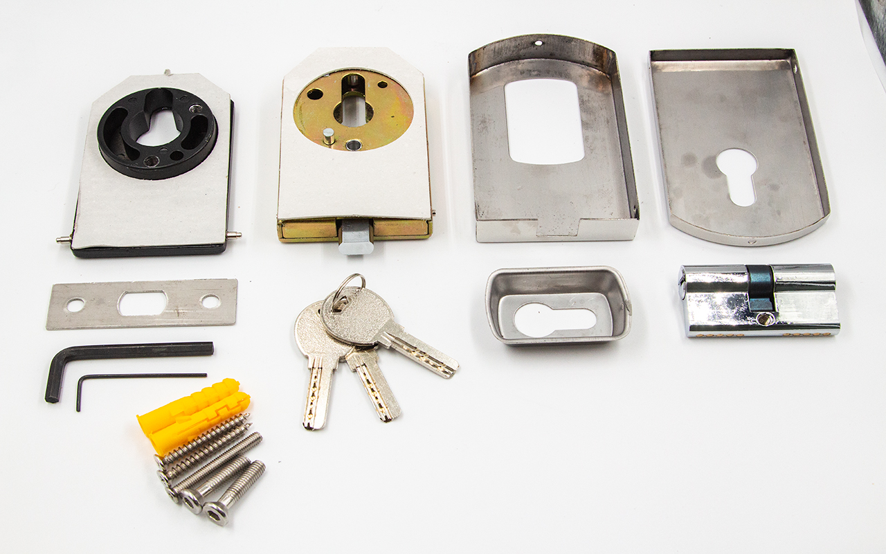 снимаем крышки замка, с помощью шестигранника раскручиваем замок на две части, фиксируем замок в заранее заготовленный вырез стекла. И обратно собираем- закручиваем замок и закрываем крышки