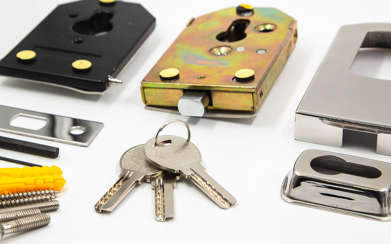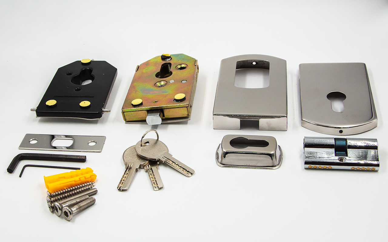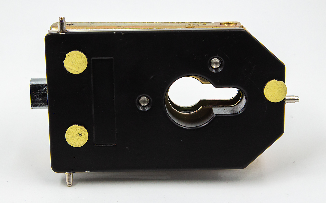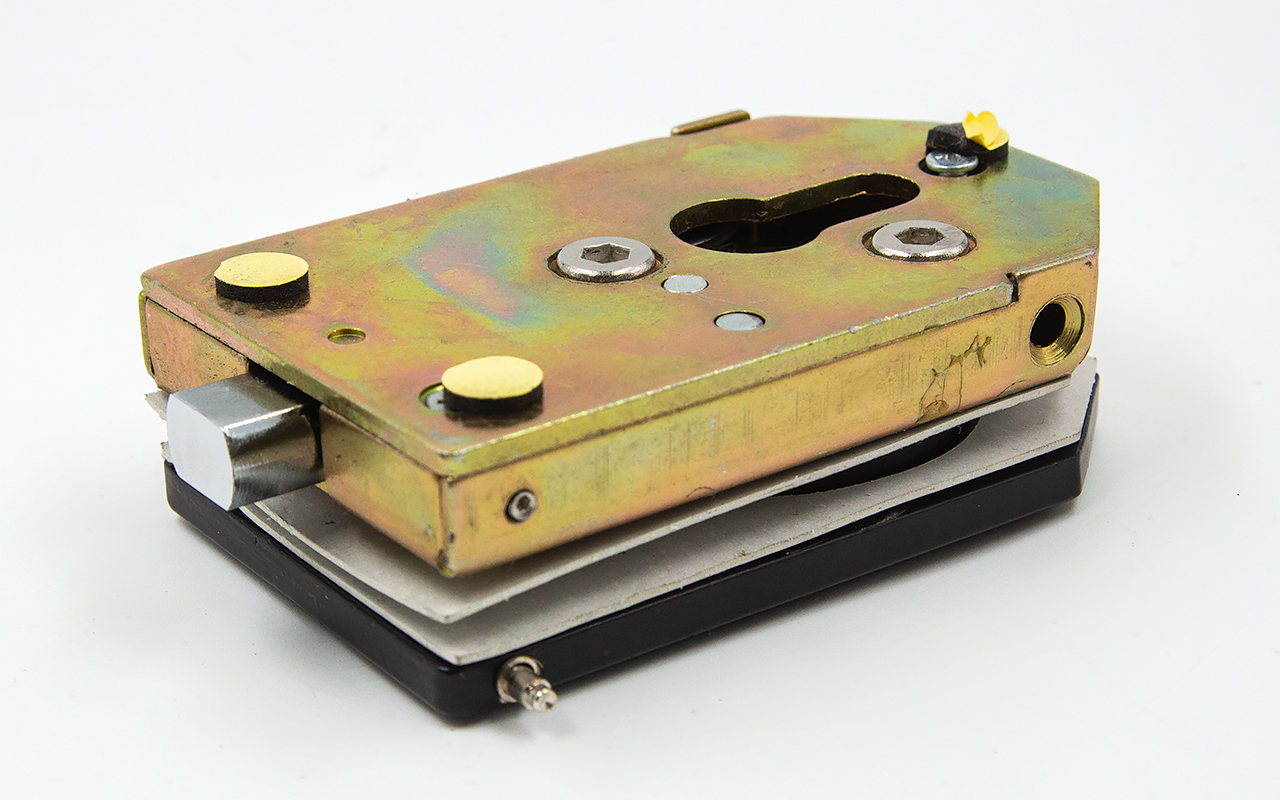 Замок вертикального типа включает в себя ответную часть для пола или стены.