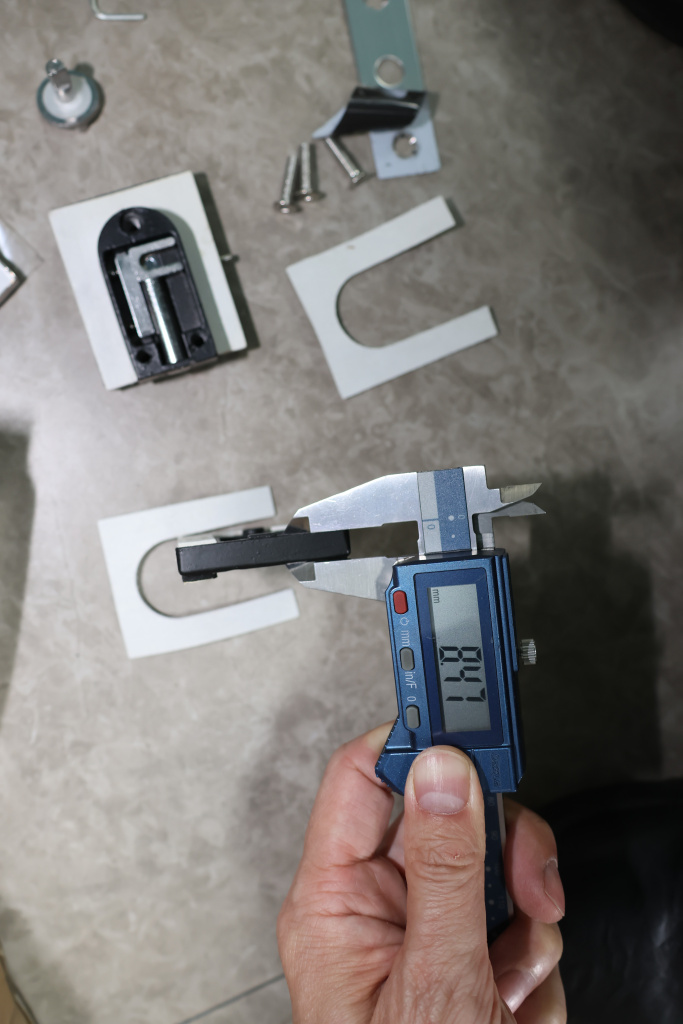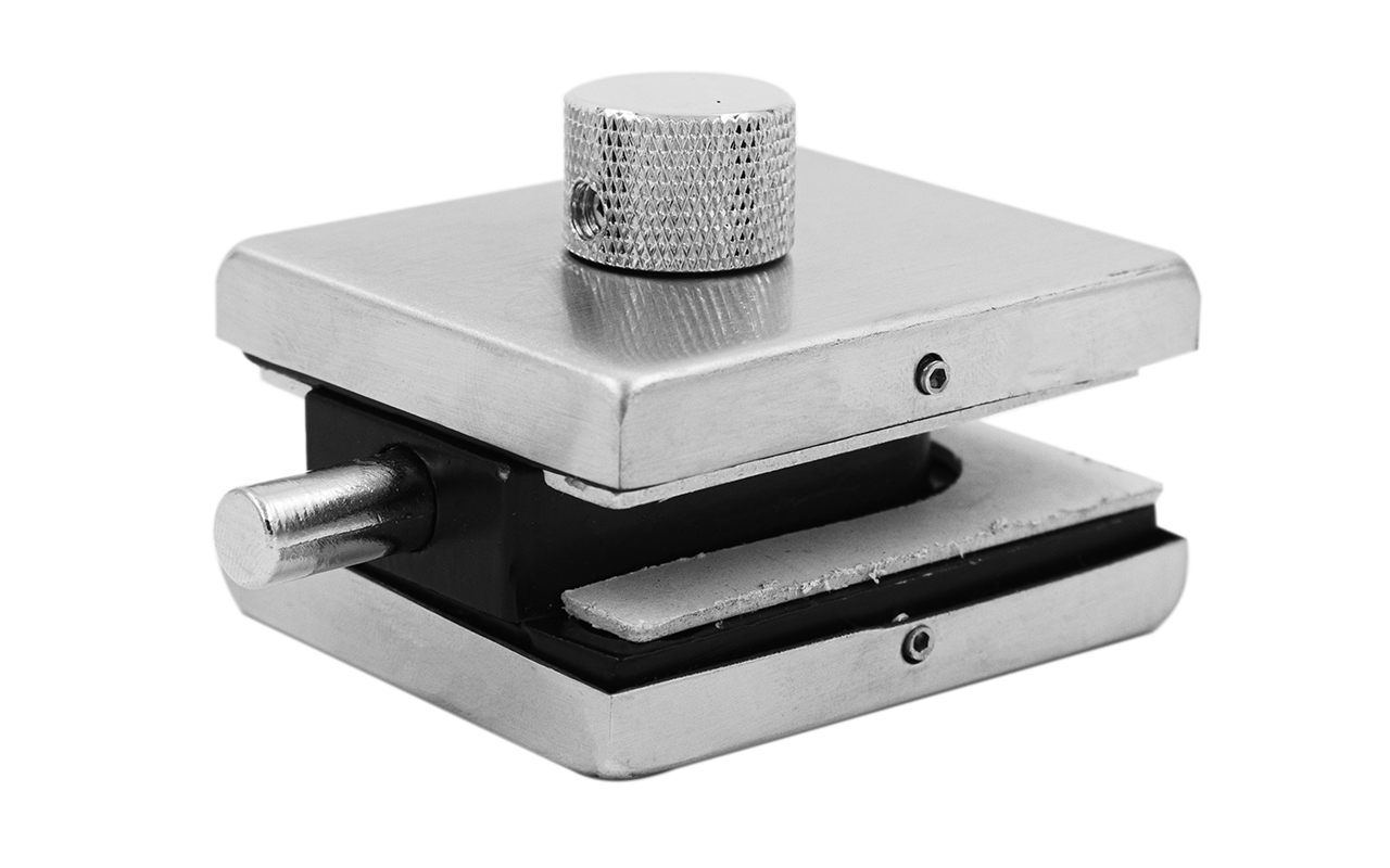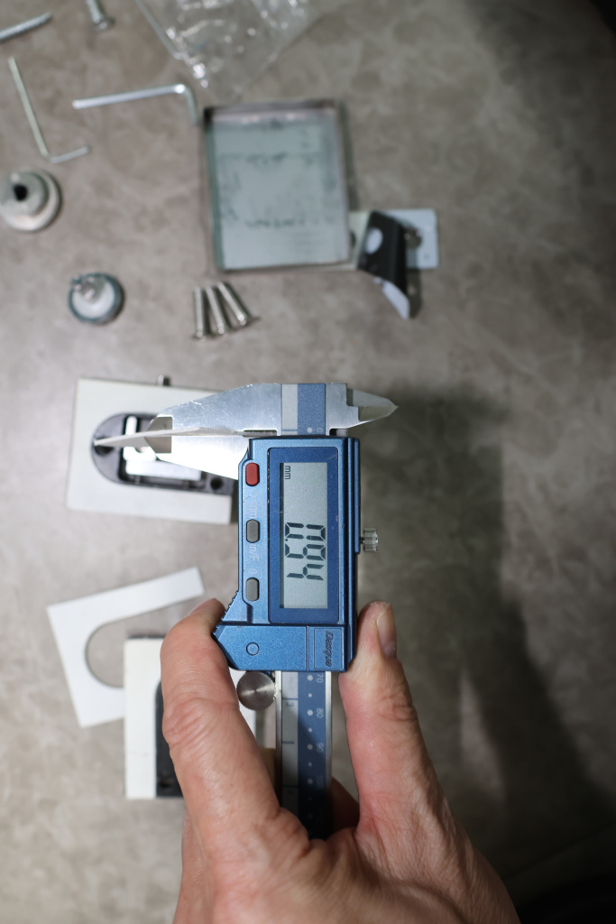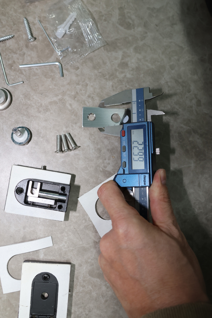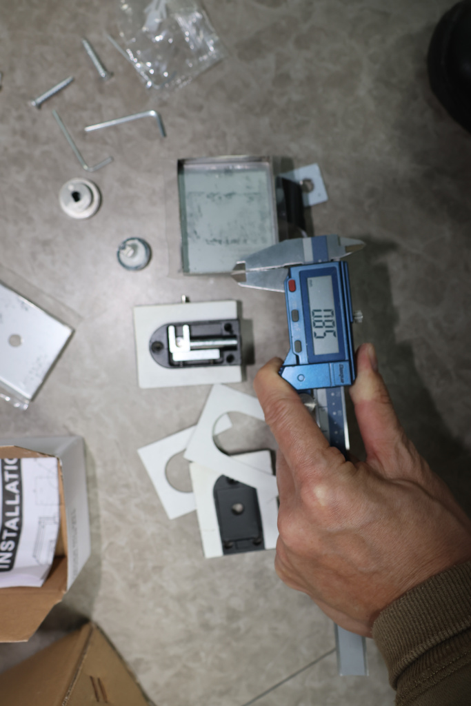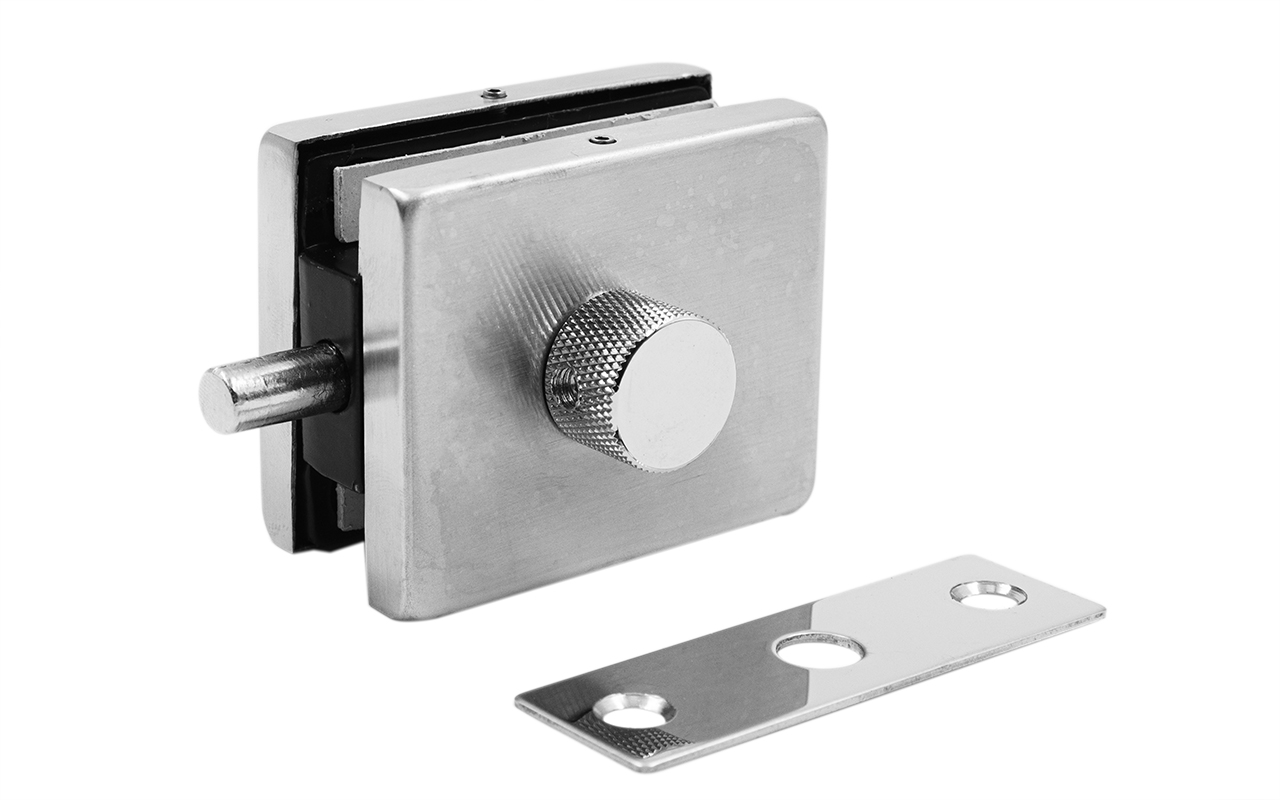 Сбоку нажимаем на крепления крышек и снимаем. Отвинчиваем винты, и фиксируем защелку замка в подготовленный вырез в стекле. Далее закручиваем и фиксируем обратно крышки.