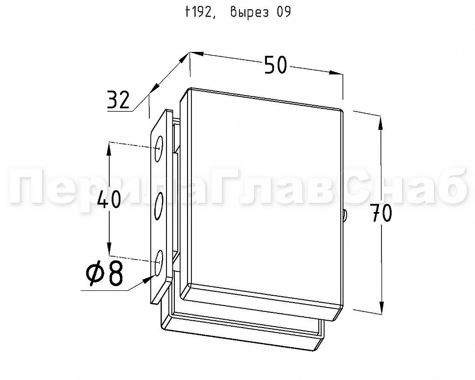 Коннектор стена-стекло с монтажной пластиной, шлифованный, вырез 09 t192 SSS