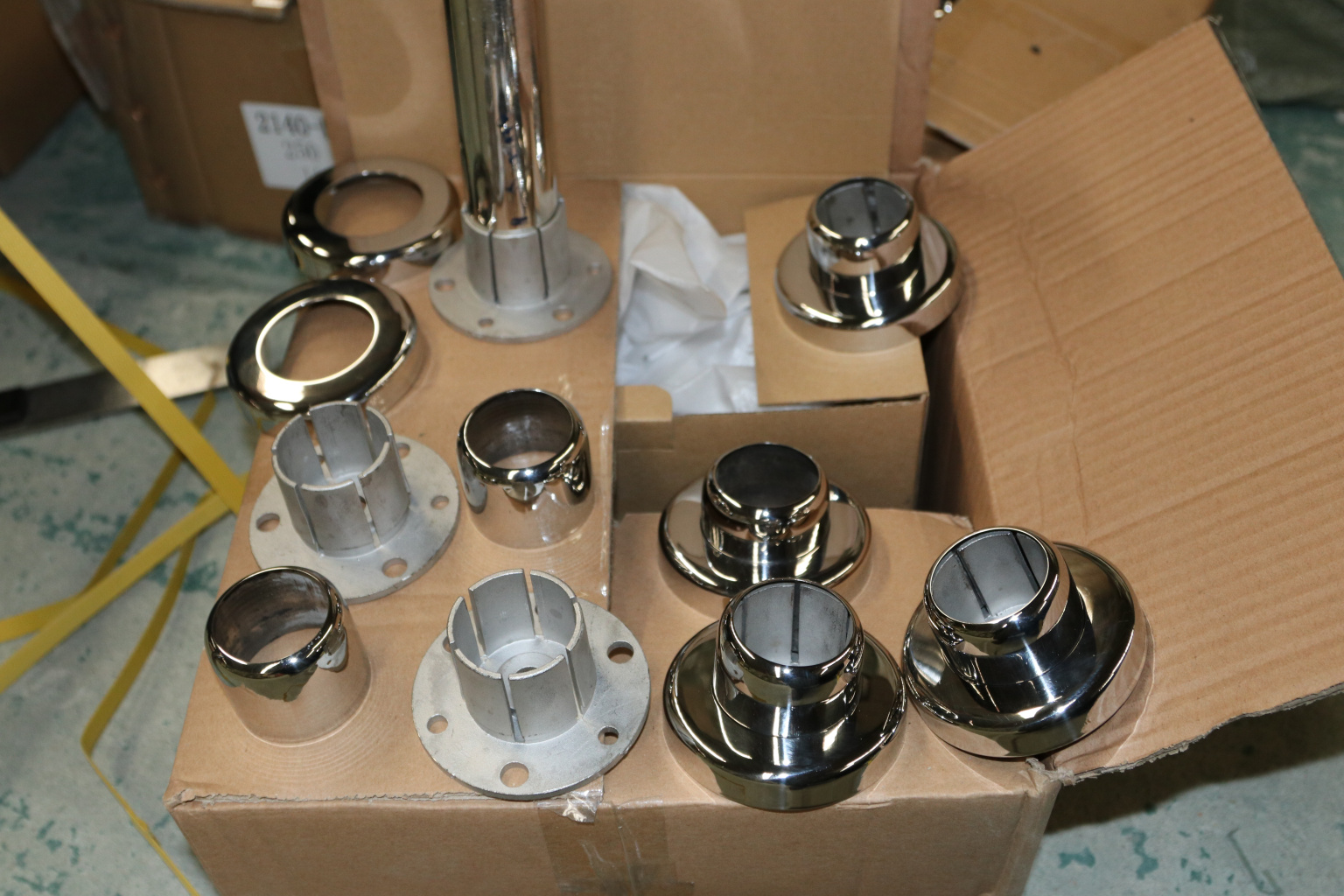 Цанга для крепления стоек из трубы Ø38.1 мм ( k819 и k849). Крепится на 3 анкера М8 или на один по центру для надежной установки на деревянную ступень, плитку, бетон. В комплект входят две декоративные крышки.