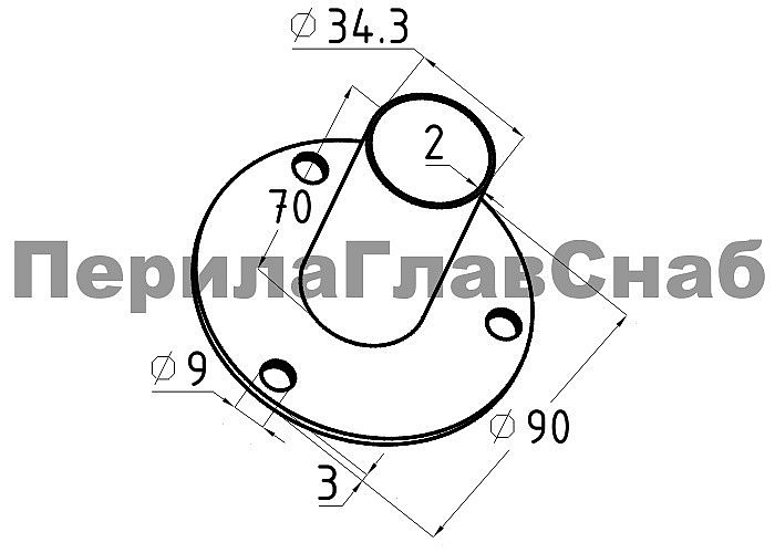 Фланец стойки 38/90 х 5 (4,3) х AISI 304 #200 3 отв х М10 х 20 k116-38-7 купить в Омске