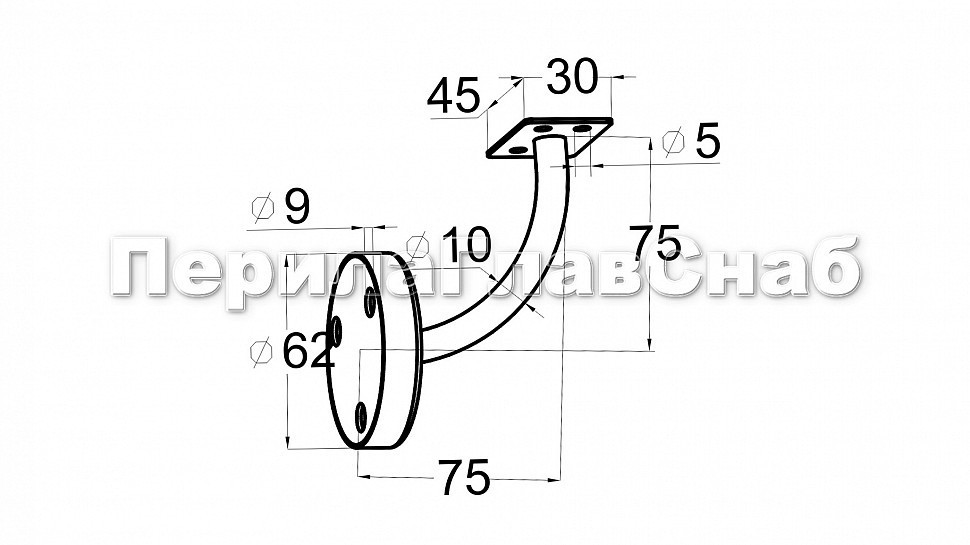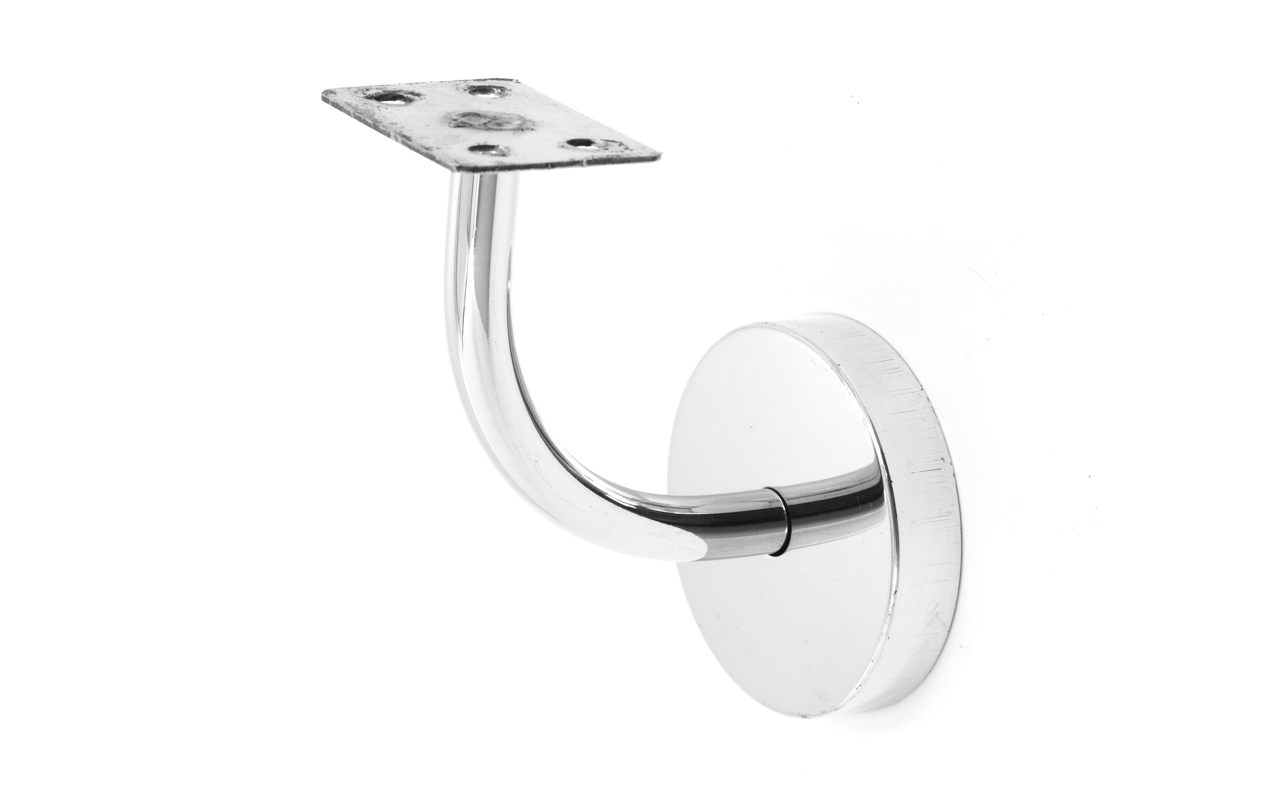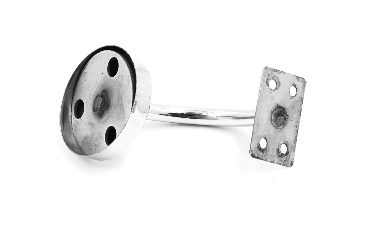 Применяется для бокового крепления нержавеющего поручня под сварку или на саморезы. Ложемент у пристенка под плоскость, так что вы с легкостью можете крепить любую профильную трубу. К стене стальной держатель крепится фланцем на три самореза 3 мм.