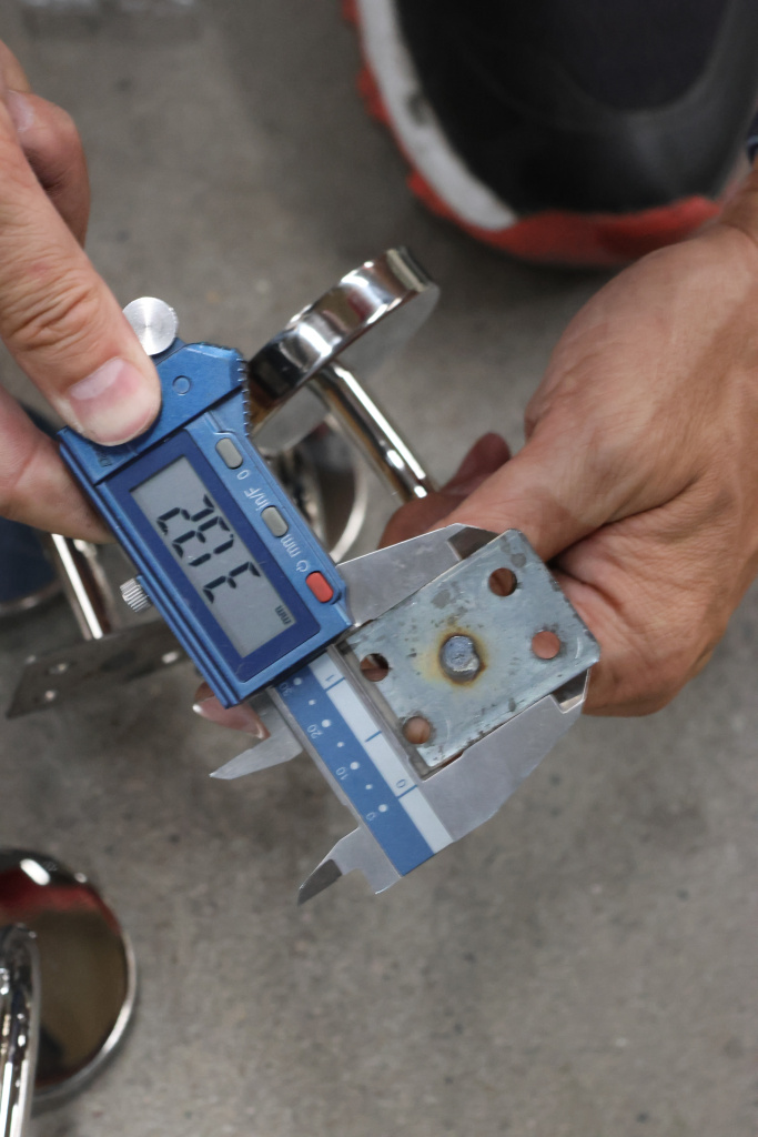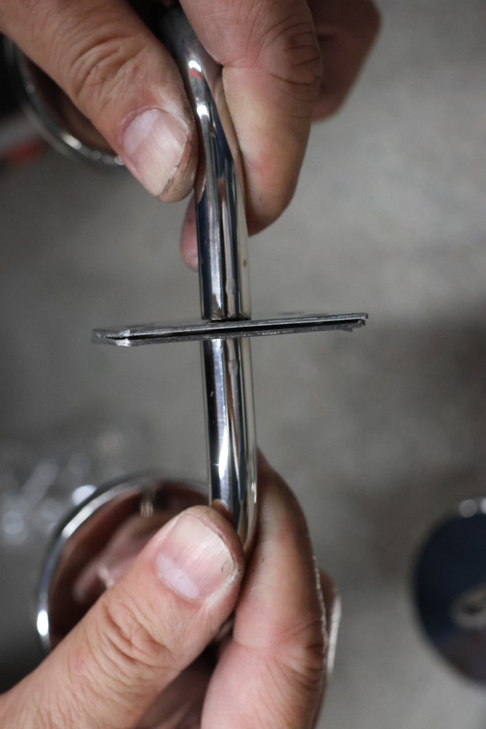 Держатель поручня выносной на стойку, с регулируемым ложементом под трубу Ø38.1 мм, резьба внутренняя М8, полированный, (AISI 304) k261