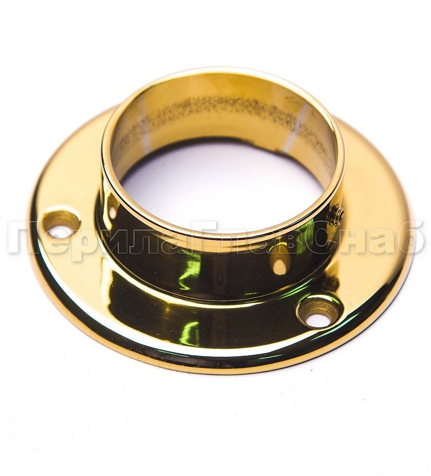 Фланец штампованный для Ø50.8 мм, толщина - 2 мм, внешний диаметр - 76 мм, под золото. Применяется для крепления трубы Ø50.8 мм поручня лестничных перил в стену. Универсально подходит для всех типов ограждений. Деталь надежная, литая, прочная.