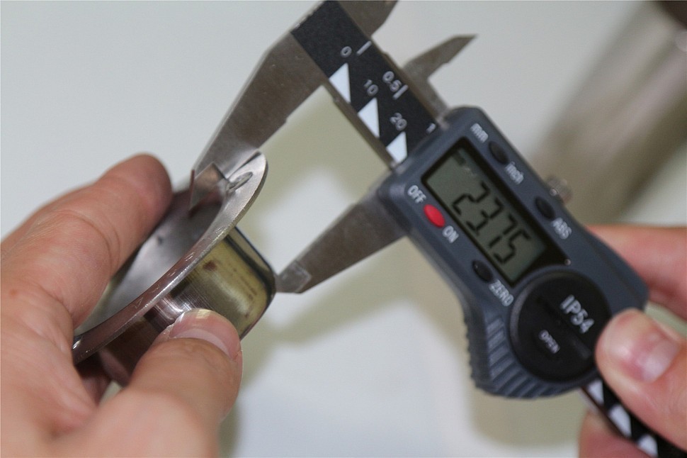 Фланец штампованный с тремя отверстиями, внешний. Диаметр 68 мм, полированный. Деталь для трубы диаметром 38.1 мм, толщина 1.3 мм. Марка стали - AISI 304