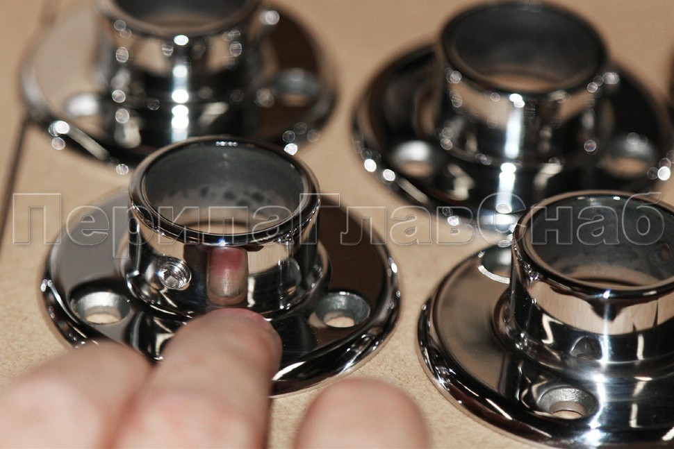 Фланец для трубы Ø50.8 мм, литой, полированный под 3 самореза 4.8 мм (AISI 304) k022
