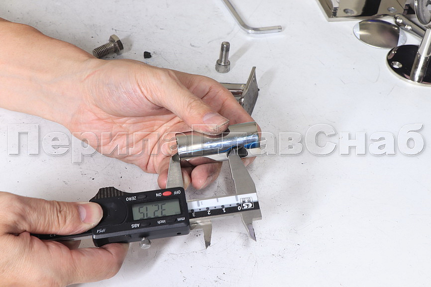 Держатель поручня к стойке диаметром - 38.1 мм, с ложементом для трубы диаметром 50.8 мм. Деталь полированная, литая. Марка стали - AISI 304