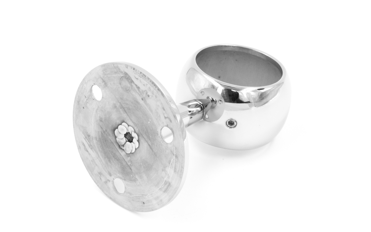 Крепление шаровидное сквозное обладает серьезным запасом прочности, благодаря толщине металла и литьевой технологии, по которой данный пристенок изготовлен.