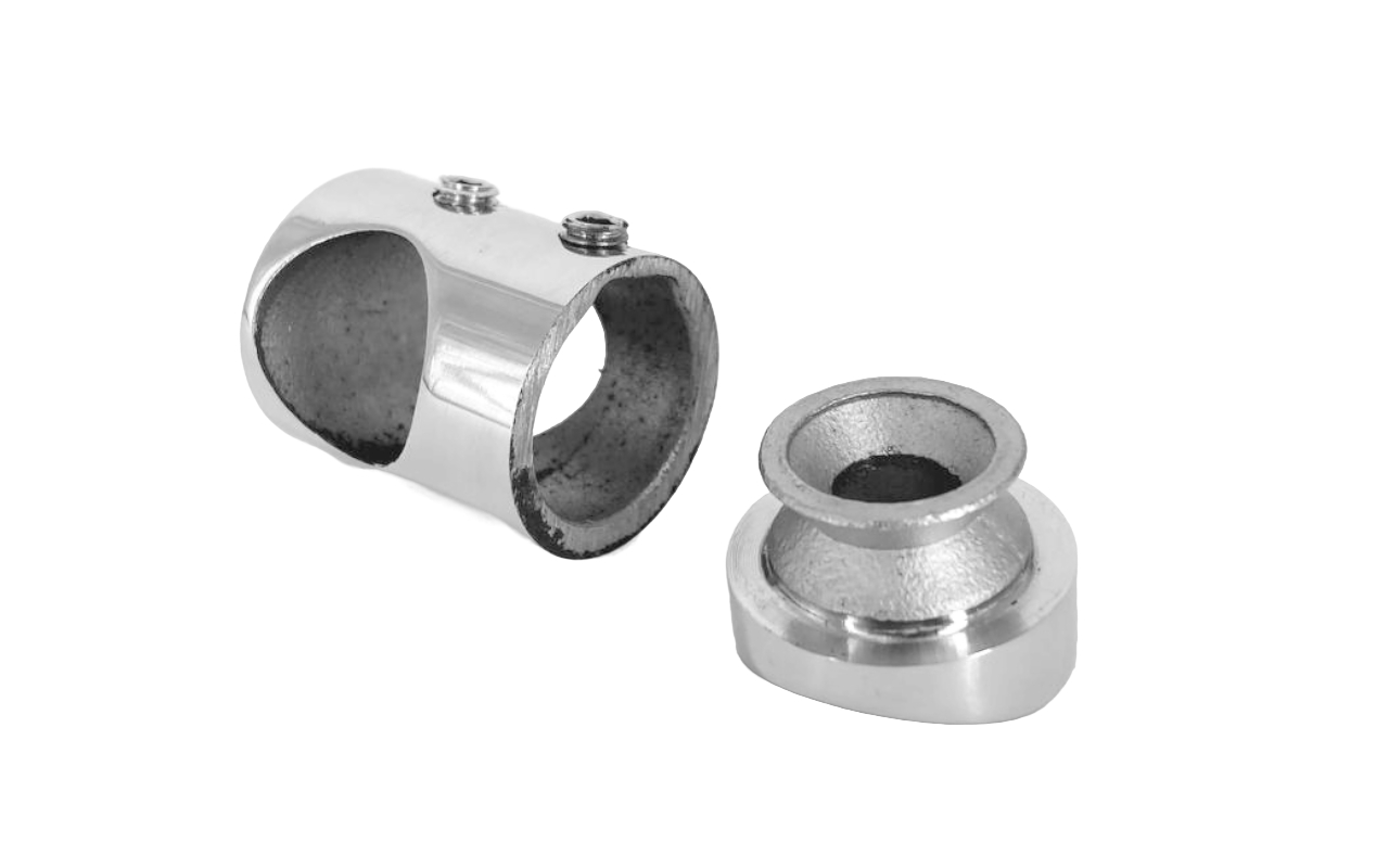 Наконечник палец с алюминиевой системой фиксации на стойке Ø38.1х1.5 мм, регулируемым ложементом под поручень Ø50.8 мм, полированный, литой, нержавеющий (AISI 304) k204 купить в Омске