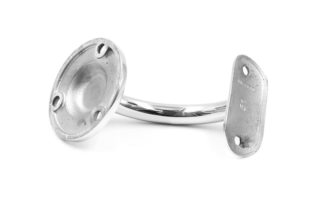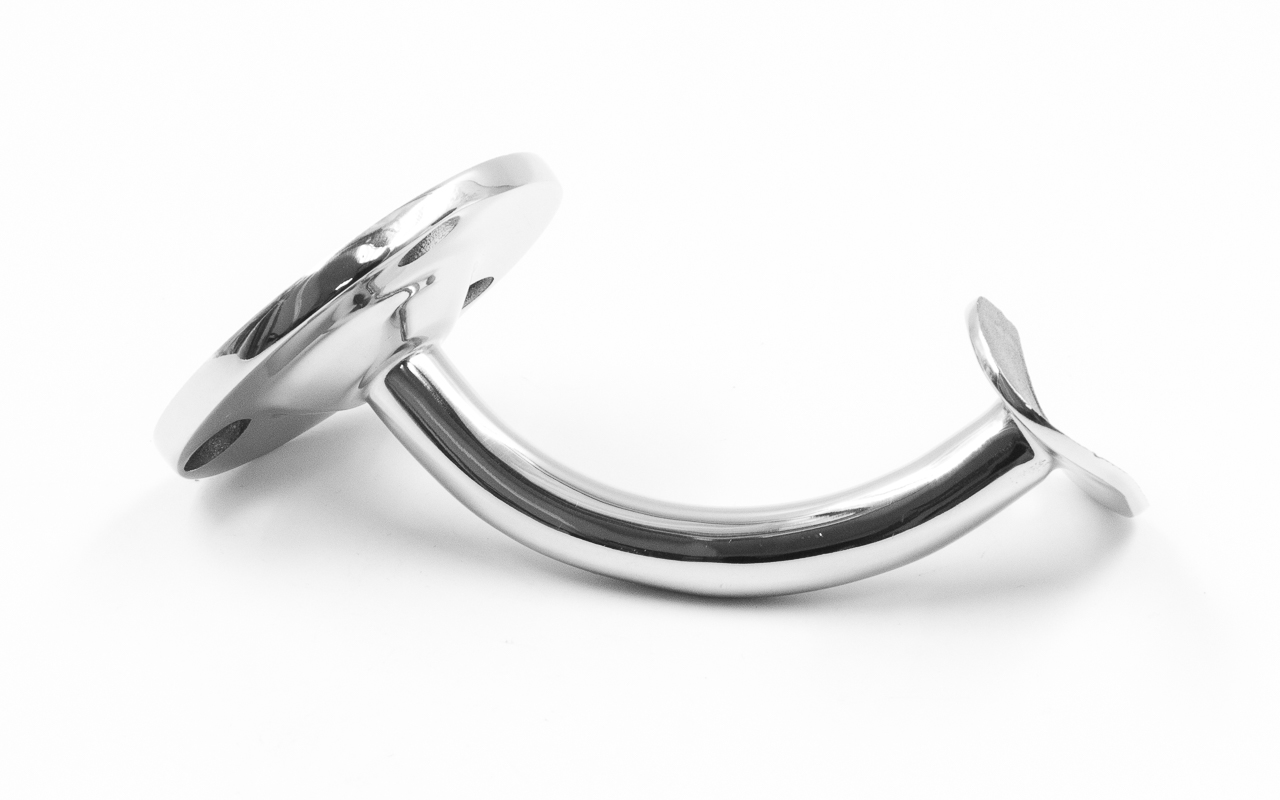 Пристенок литой, под поручень диаметром - 50.8 мм, отверстия в фланце для самореза с потайной головкой. Деталь полированная, литая. Марка стали - AISI 304.
