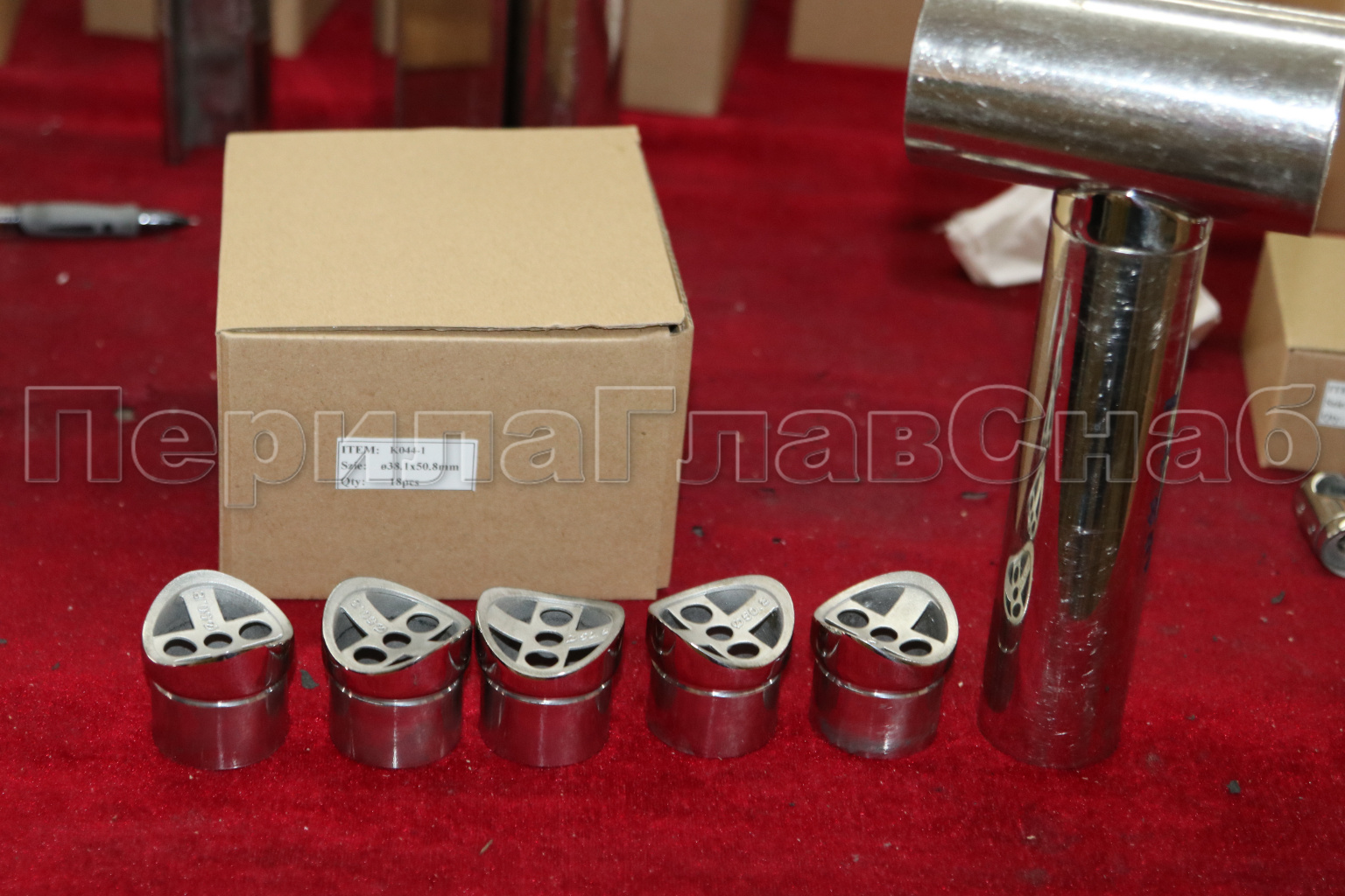 Наконечник седловина прямая 90° , на стойку диаметром 38.1 мм, под поручень диаметром 50.8 мм. Деталь литая, полированная. Марка стали - AISI 304