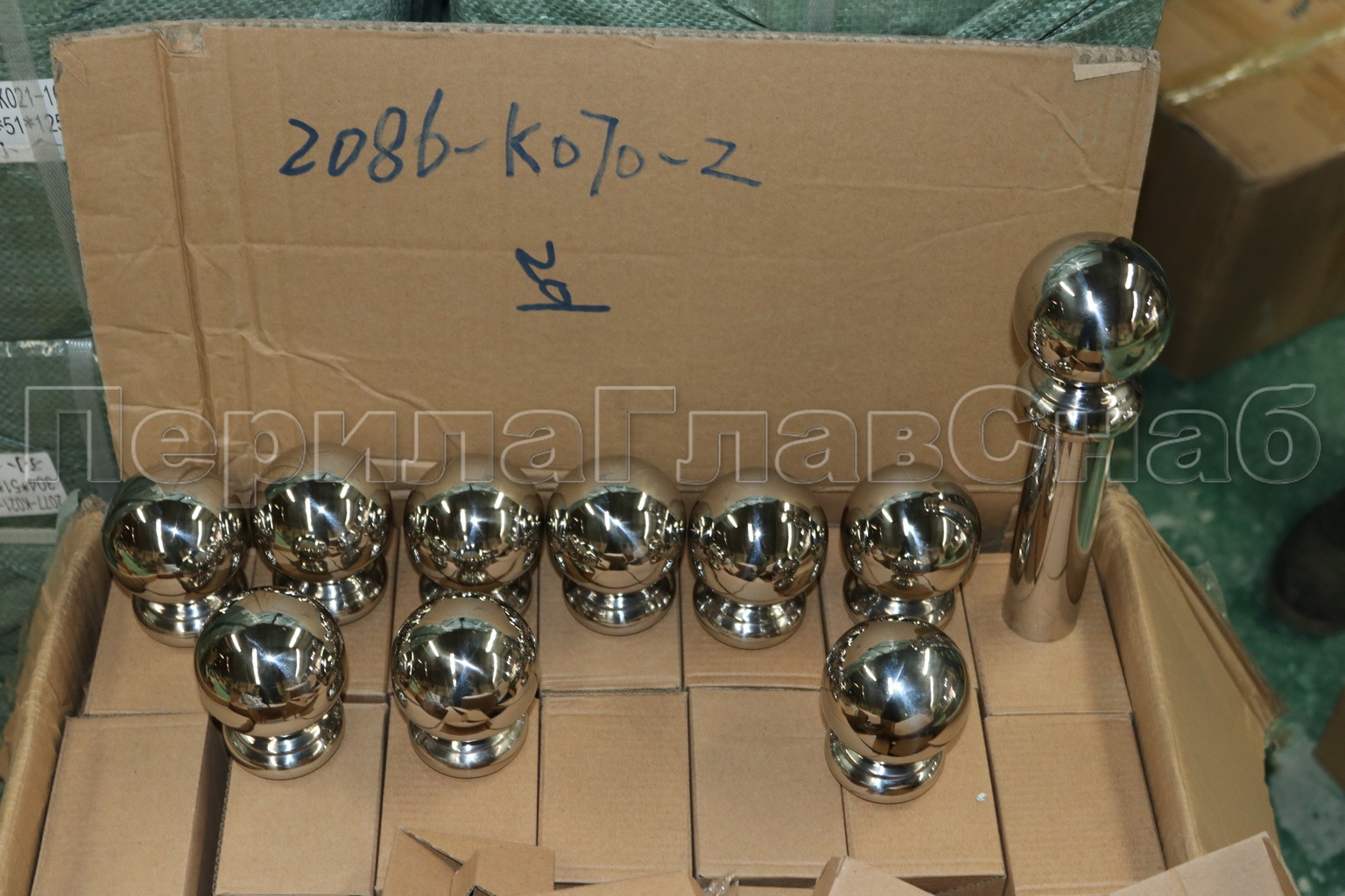 Наконечник шар на стойку Ø38.1 мм, штампованный, полированный, 400 Grit, AISI 201 k070-2