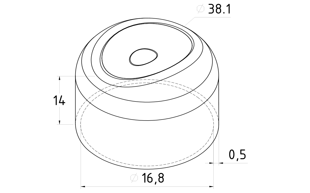 Наконечник палец (солдатик) на стойку Ø38.1 мм, без ложемента, литой, полированный, под сварку, облегченный, нержавеющий AISI 304, k034